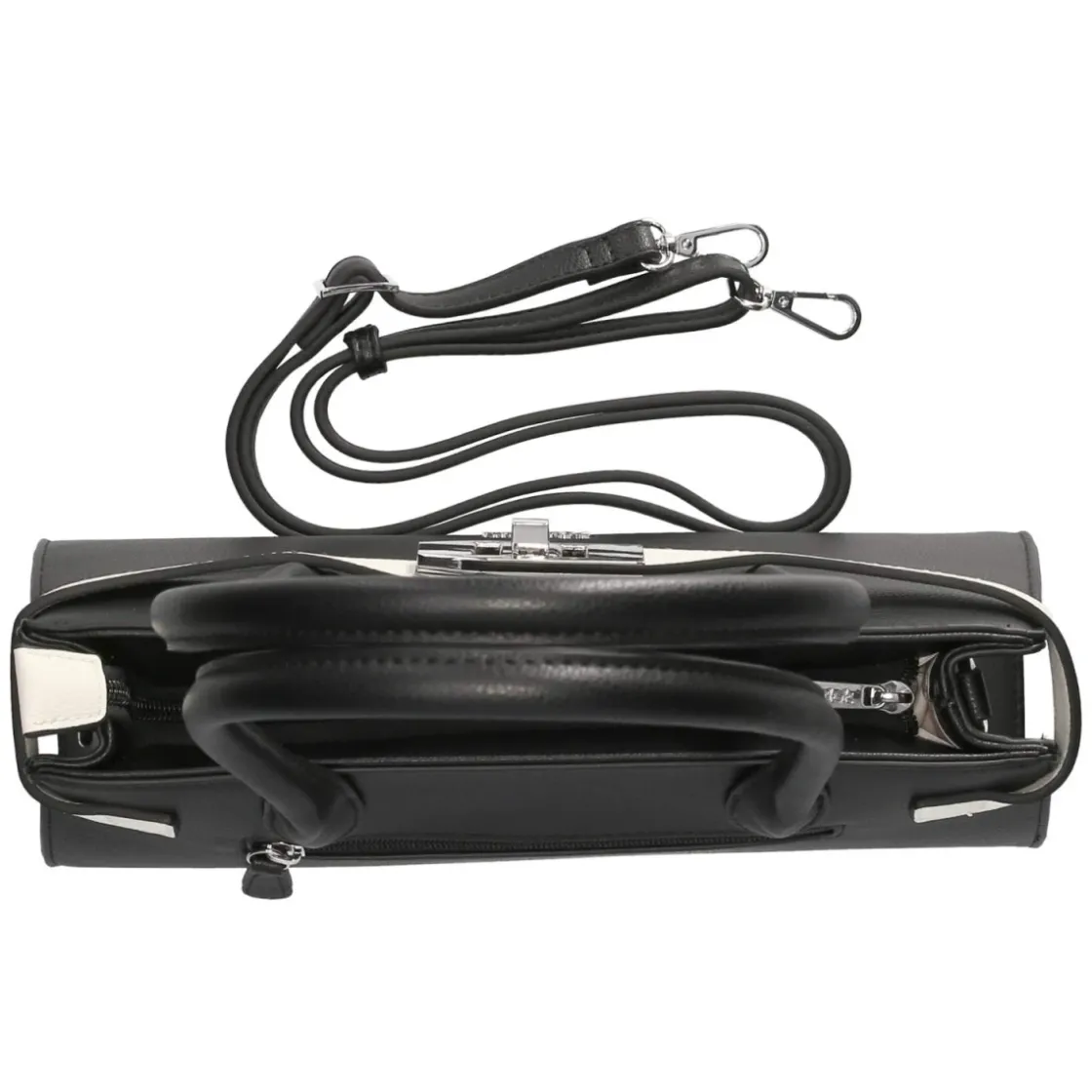Die schwarze Schultertasche für Damen vereint klare Linien mit praktischer Organisation – ideal für Alltag und Abendevents. Mit kompakten Maßen von ca. 15 x 32 x 9 cm und einem Volumen von etwa 4 Litern bietet sie Platz für Essentials, ohne aufzutragen. Zwei feste Schulterriemen garantieren sicheren Halt, während ein abnehmbarer, verstellbarer Schulterriemen bis ca. 140 cm flexible Tragemöglichkeiten von Schulter bis Crossbody eröffnet. Der weiße, verstellbare Zierriemen setzt einen modernen Kontrast und unterstreicht die strukturierte Silhouette. Ein verstärkter Boden bewahrt die Form, das rückseitige Reißverschlussfach sorgt für schnellen Zugriff. Im Reißverschlusshauptfach bringen ein Steckfach und ein weiteres Reißverschlussfach Ordnung. Modetipp: Zur monochromen Kombination mit schwarzer Jeans, weißem Hemd und Slingbacks wirkt der weiße Akzent besonders edel.