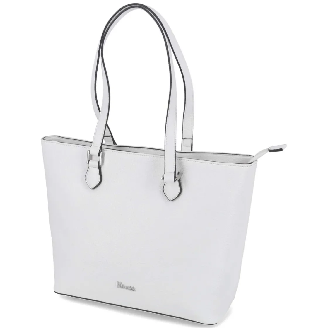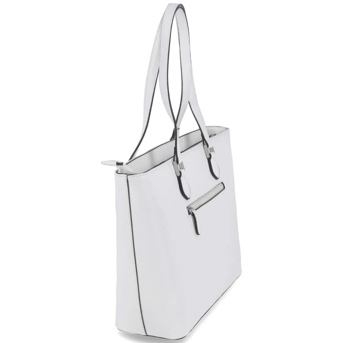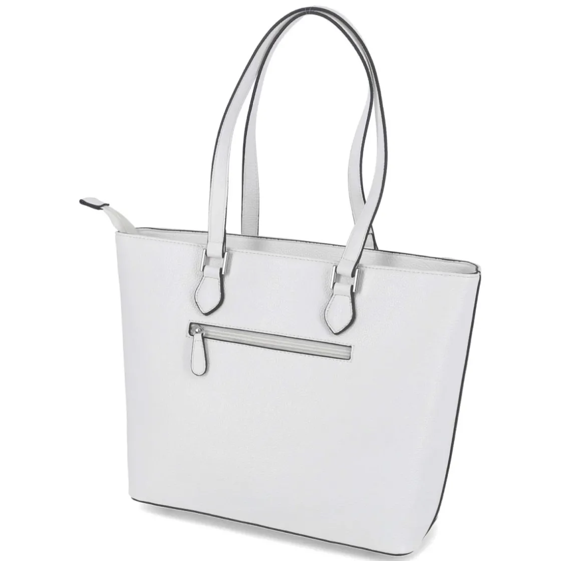 Dieser Shopper in strahlendem Weiß vereint klare Linien mit einer klug strukturierten Innenaufteilung. Mit ca. 28 x 32 x 12 cm und etwa 10 Litern Volumen begleitet die Handtasche mühelos durch Büro, Stadtbummel und Abendprogramm. Ein Reißverschlusshauptfach schützt Inhalte zuverlässig, hinten bietet ein weiteres Reißverschlussfach schnellen Zugriff auf Essentials. Innen sorgen ein Reißverschlussfach, zwei Steckfächer und zwei Stiftplätze für Übersicht, das Schlüsselband mit Karabiner hält den Schlüsselbund sicher an Ort und Stelle. Feste Henkel von ca. 60 cm tragen angenehm über Schulter oder Arm, der verstärkte Boden mit Metallfüßchen bewahrt die Form und schont Oberflächen. Das weiße Finish bringt frische Eleganz in sportliche und formelle Looks. Modetipp: Zu monochromen Outfits in Creme und Taupe kombinieren, dazu zarte Gold-Details für einen modernen Ton-in-Ton-Effekt.