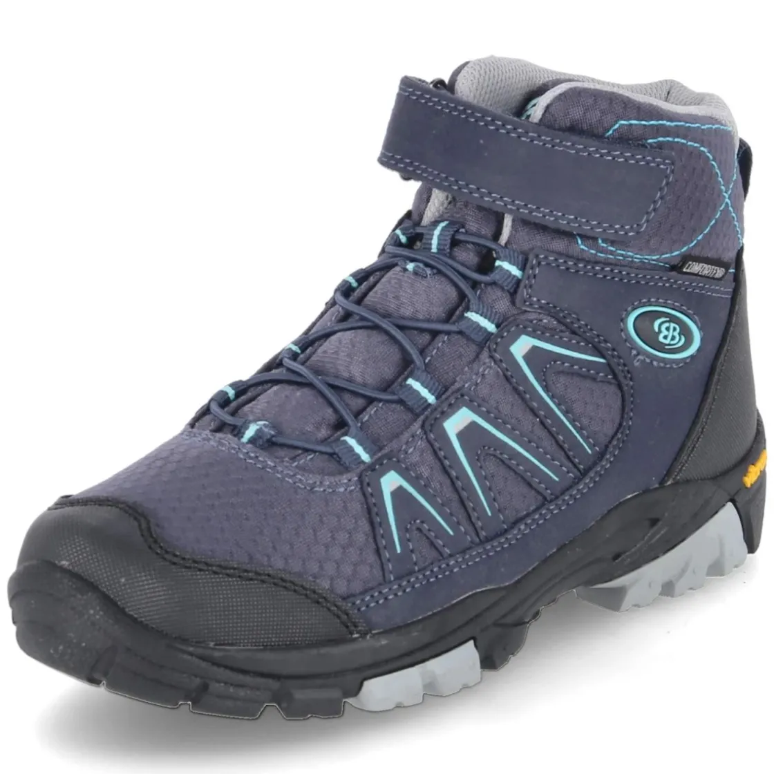 Der Outdoorboot MOUNT MORAN von Brütting setzt auf funktionale Stärke und kindgerechten Komfort. Das blaue Obermaterial aus Textil und Synthetik zeigt eine sportliche Optik mit hellblauen Highlights und dynamischen Zierstreifen. Dank wasserfester und zugleich atmungsaktiver Verarbeitung bleiben Kinderfüße bei wechselhaftem Wetter angenehm trocken, das warme Futter schützt zuverlässig an kalten Tagen. Der runde Leisten und das gepolsterte Fußbett bieten viel Bequemlichkeit, ein gepolsterter Einstieg sowie die Anziehlasche erleichtern das Hineinschlüpfen. Der Klettverschluss sorgt für sicheren Halt, während verstärkte Fersen- und Zehenbereiche zusätzliche Stabilität geben. Die flexible, rutschhemmende VIBRAM-Profilsohle bietet Grip auf Waldwegen und Pausenhöfen. Der Schuh fällt normal aus. Modetipp: Zu Funktionshose und Softshelljacke entsteht ein stimmiger Outdoor-Look, im Alltag harmoniert das Blau perfekt mit Denim und Steppweste.