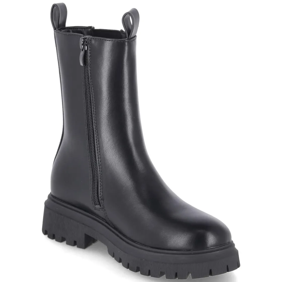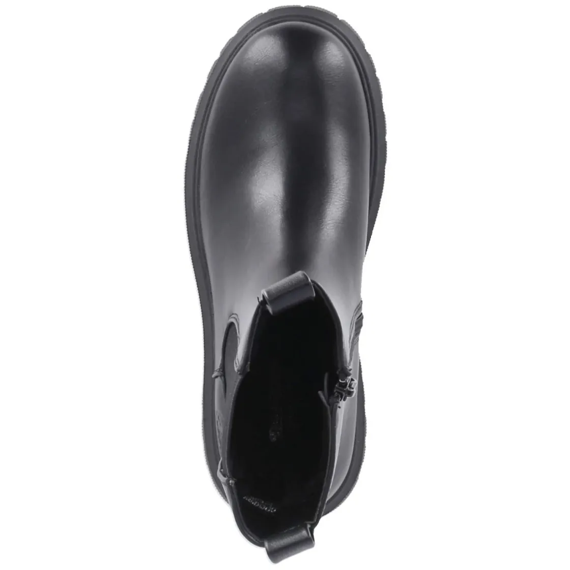 Der klassische Chelsea Boot von Dockers zeigt sich in tiefem Schwarz mit runder Spitze und markantem Blockabsatz von 4 cm. Reißverschluss und seitlicher Elastikeinsatz sorgen für einen bequemen Einstieg, während die Anziehlasche das Hineinschlüpfen zusätzlich erleichtert. Das pflegeleichte Obermaterial aus Textil und Synthetik lässt sich mühelos reinigen und punktet im Alltag. Innen bietet ein leichtes, weiches Fleecefutter angenehme Wärme an kühleren Tagen, die gepolsterte textile Decksohle dämpft jeden Schritt. Eine robuste, rutschhemmende Profilsohle und der verstärkte Fersenbereich geben Halt auf dem Schulweg wie auf dem Spielplatz. Der Schnitt fällt normal aus und eignet sich ideal für Kinderfüße, die Komfort und Stabilität brauchen. Modetipp: Für einen zeitlosen Look zu schwarzer Jeans, gestreiftem Longsleeve und kuscheligem Parka stylen; auch zu Strickkleid und dicker Strumpfhose wirkt der Boot modern.