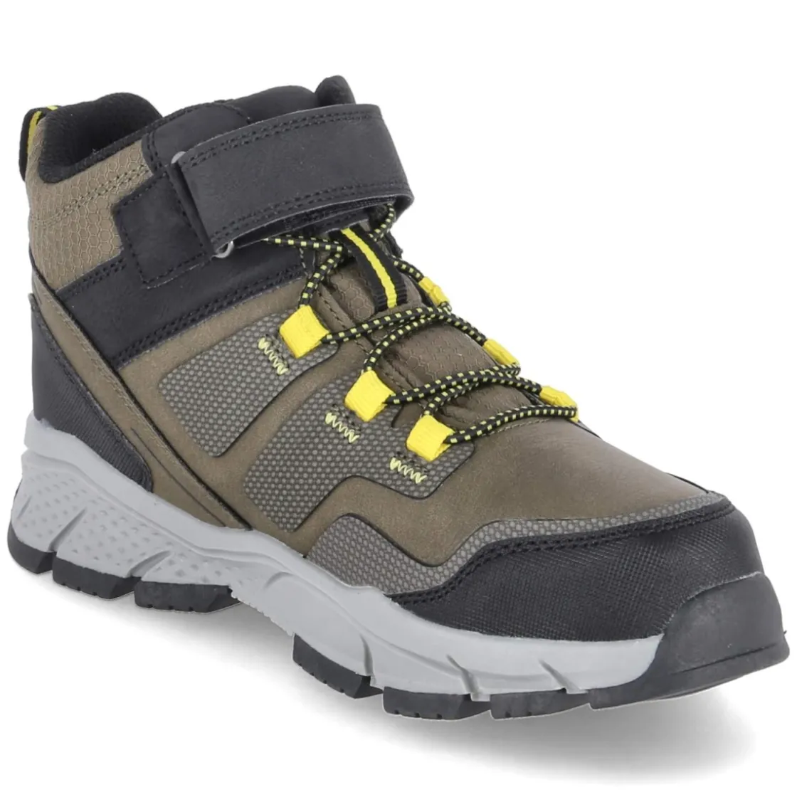 Robust und vielseitig zeigen sich die Dockers Outdoorboots für Kinder in markantem Grün. Das Obermaterial aus Textil und Synthetik kombiniert sportliches Design mit hoher Funktionalität: wasserfest, isolierend und zugleich atmungsaktiv. Warmfutter, gepolsterter Einstieg und ein weich gepolstertes Fußbett sorgen für angenehmen Tragekomfort, während rund gearbeitete Schuhspitzen sowie verstärkter Zehen- und Fersenbereich zusätzlichen Schutz bieten. Der bequeme Klettverschluss in Kombination mit einem Elastikband in Schnüroptik ermöglicht schnelles An- und Ausziehen und sicheren Halt. Die rutschhemmende Profilsohle liefert Trittsicherheit auf nassem Laub und winterlichen Wegen. Mit textiler Decksohle und dem Hinweis, dass der Schuh normal ausfällt, ist dieser Alltagsbegleiter bestens für Kita, Spielplatz und kleine Touren gerüstet. Modetipp: In Kombination mit Softshelljacke und Thermojeans entsteht ein stimmiger Outdoor-Look.