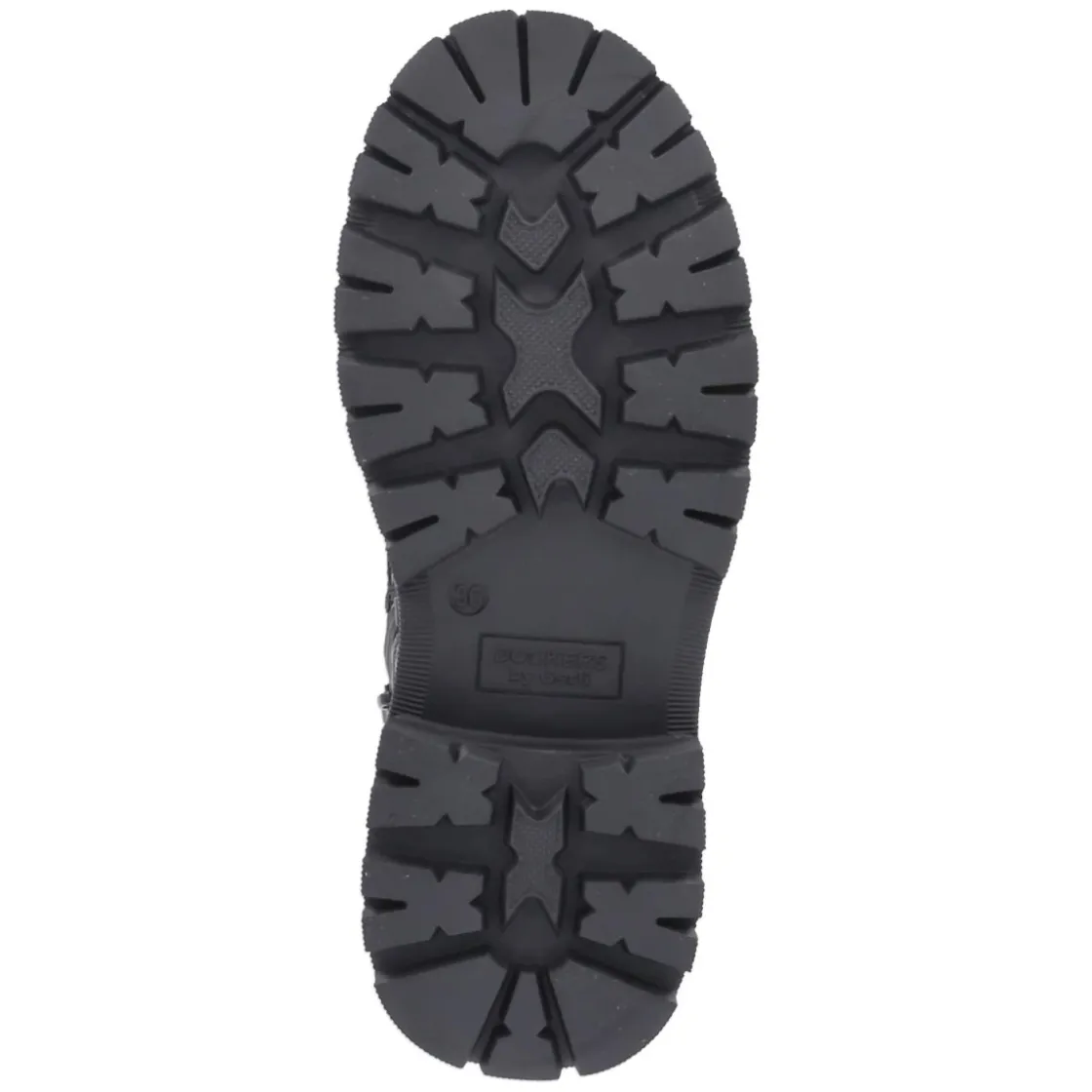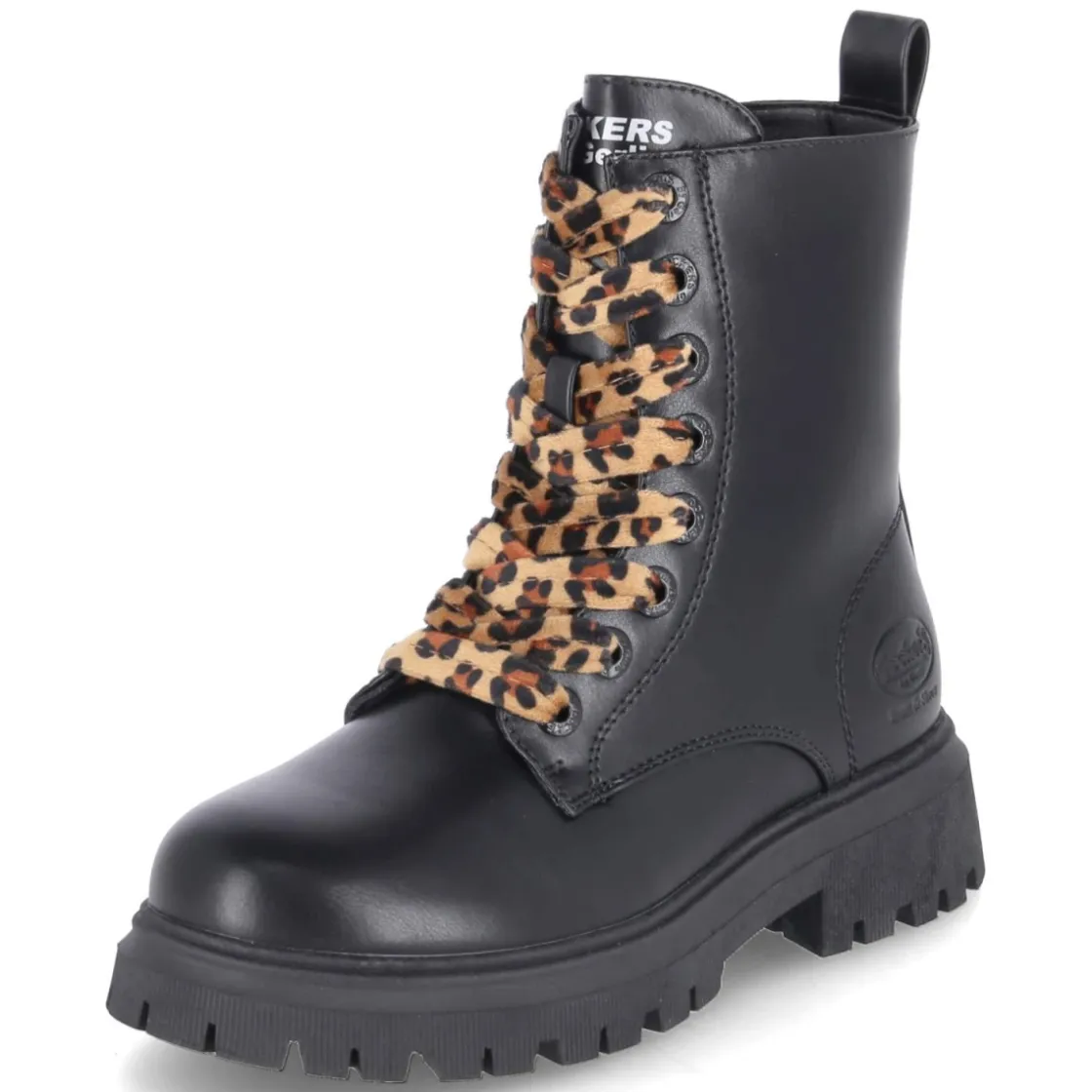 Robuster Begleiter für kühle Tage: Die schwarzen Dockers Schnürboots für Kinder vereinen urbanen Look mit verlässlichem Komfort. Pflegeleichtes Synthetik-Obermaterial und die runde Schuhspitze bieten alltagstaugliche Robustheit, während das leichte Warmfutter mit textiler Decksohle angenehm wärmt. Der blockige 4‑cm-Absatz sorgt in Kombination mit der flexiblen, rutschhemmenden Profilsohle für stabilen Tritt auf nassem Laub und glattem Pflaster. Praktisch im Alltag: Schnürsenkel & Reißverschluss ermöglichen einen bequemen Einstieg, die verstärkte Ferse mit Anziehlasche unterstützt beim schnellen An- und Ausziehen. Die Schnürung im Leo-Look setzt ein modisches Statement, das jedes Outfit aufwertet. Fällt normal aus und passt so unkompliziert zu gängigen Größen. Modetipp: Zusammen mit lässiger Straight-Jeans, kuscheliger Strickmütze und einer gesteppten Pufferjacke harmonieren die Leo-Details besonders stimmig.
