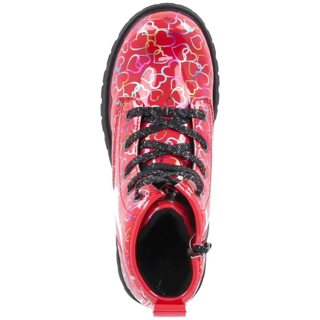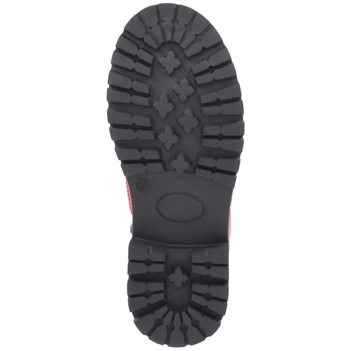 Der Dockers Schnürboot in kräftigem Rot vereint verspieltes Design mit funktionalen Details für aktive Kinder. Die elegante Lackoptik unterstreicht den gemusterten Look mit Herzprint in metallischen Regenbogenfarben und sorgt bei jedem Schritt für glanzvolle Momente. Innen verwöhnt warmes Futter an kalten Tagen, während die textile Decksohle weichen Komfort bietet. Schnürsenkel und seitlicher Reißverschluss erleichtern das Anziehen, die verstärkte Ferse mit Anziehlasche gibt zusätzlichen Halt. Mit rundem Leisten, 3 cm hohem Blockabsatz und flexibler Profilsohle entsteht ein stabiler Auftritt bei zuverlässiger Traktion. Das Modell fällt normal aus und ist wie gemacht für den perfekten Auftritt – ob Schulweg oder Familienfest. Modetipp: Zu Thermo-Leggings und Strickkleid wird der Boot zum festlichen Hingucker, mit Jeans und Steppjacke entsteht ein lässiger Winterlook.