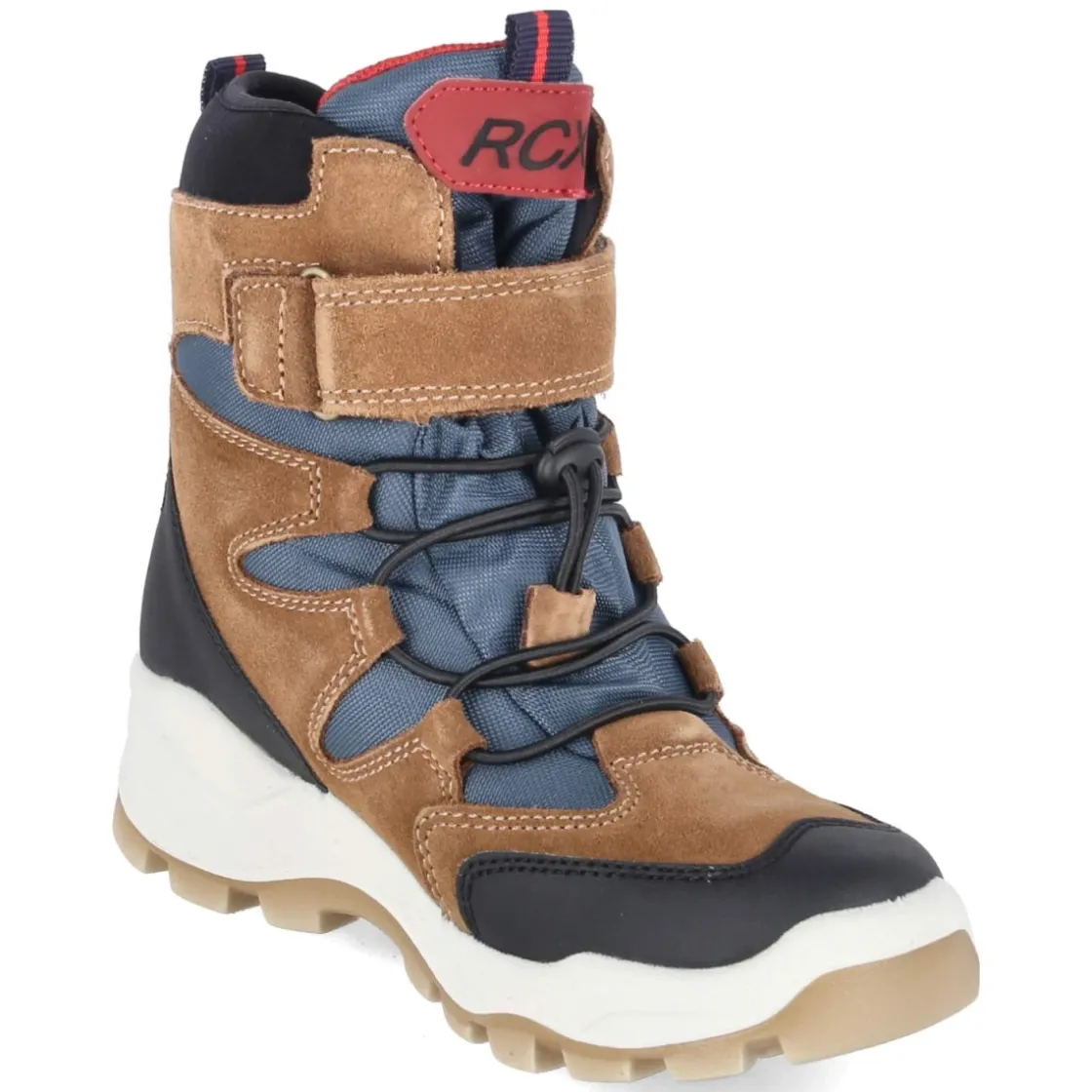 Die Winterboots von Imac in warmem Braun verbinden funktionale Ausstattung mit sportlicher Optik. Der wasserabweisende Material-Mix aus Leder und Textil schützt zuverlässig vor Nässe, während das kuschelige Warmfutter kleine Füße an kalten Tagen angenehm umhüllt. Eine runde Schuhspitze bietet Zehenfreiheit, der gepolsterte Einstieg sorgt für Komfort, und eine Anziehlasche erleichtert das Hineinschlüpfen. Klettverschluss und Elastikband garantieren einen adaptiven, sicheren Sitz, die rutschfeste Profilsohle gibt Halt auf Matsch, Schnee und glatten Wegen. Das Wechselfußbett mit textiler Decksohle lässt sich zum Lüften oder für eigene Einlagen herausnehmen. Die Passform fällt normal aus, verstärkte Zehen- und Fersenbereiche erhöhen die Strapazierfähigkeit. Farbige Elemente in Schwarz, Blau und Rot setzen dynamische Akzente zum braunen Obermaterial. Modetipp: Perfekt zu einem navyfarbenen Schneeanzug und einer gemusterten Strickmütze, die die blauen Details aufgreift.