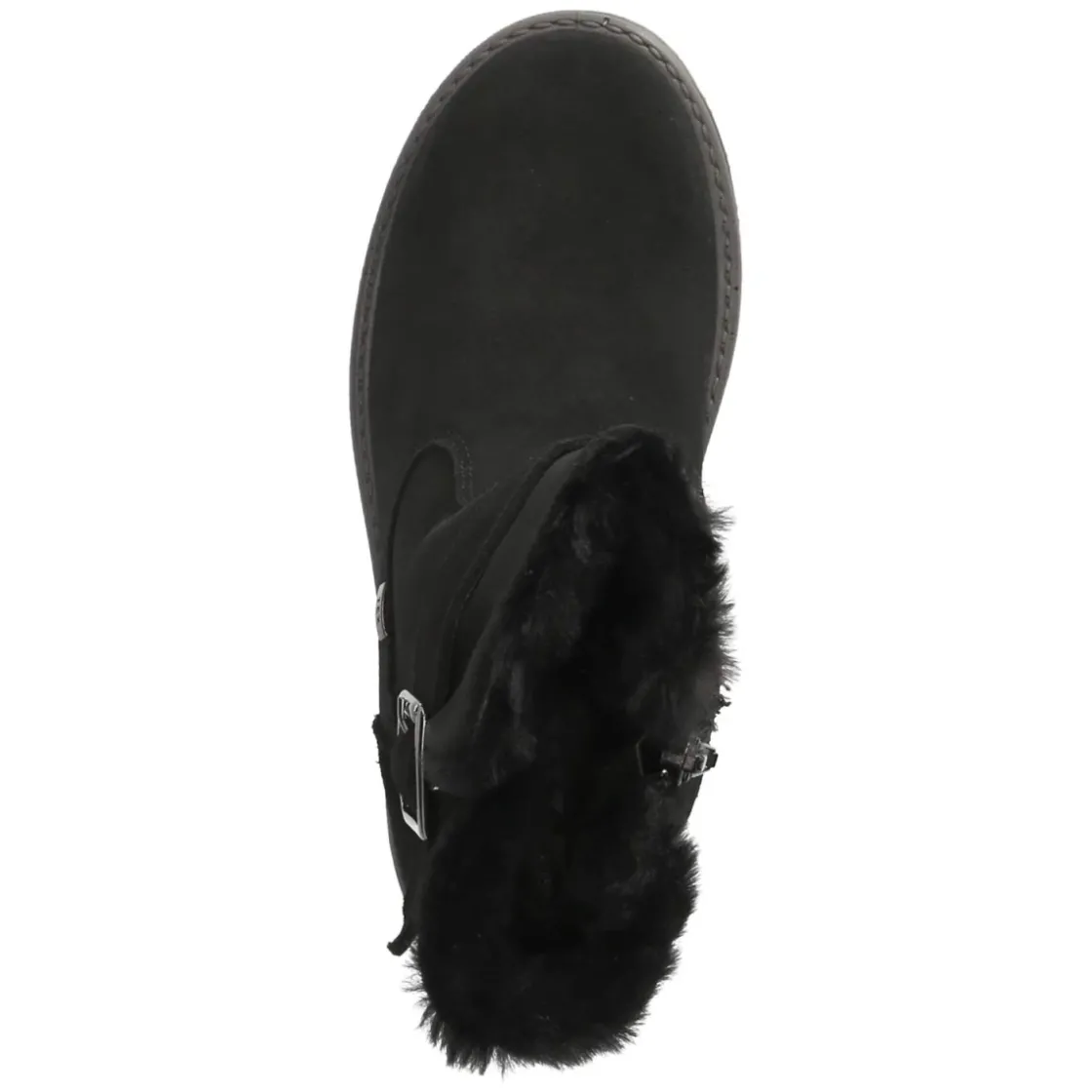 Die Imac Winterstiefeletten in Schwarz vereinen kindgerechten Komfort mit robuster Wintertauglichkeit. Weiches Rauleder aus atmungsaktivem Echtleder, warmes Futter und ein Schaftrand in Kunstfelloptik sorgen für behagliche Wärme an kalten Tagen. Dank wasserabweisender Tex-Ausstattung bleiben Füße bei Schneematsch geschützt, während die flexible, rutschfeste Laufsohle sicheren Halt bietet. Der bequeme Reißverschlusseinstieg erleichtert das An- und Ausziehen, die runde Spitze schafft Zehenfreiheit, und die verstärkte Ferse erhöht die Stabilität. Ein Wechselfußbett und eine textile Decksohle unterstützen ein angenehmes Fußklima; die Passform fällt normal aus. Der Zierriemen mit metallischer Schnalle setzt einen dezenten Akzent, der vielseitig kombinierbar ist. Modetipp: Perfekt zu Thermojeans, Steppjacke und Strickmütze in gedeckten Tönen für einen stilvollen, funktionalen Winterlook im Alltag und auf dem Spielplatz.
