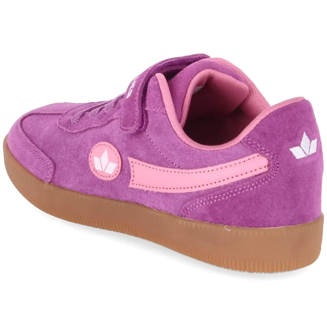 Der Low Sneaker SHUTTLE L VS von Lico bringt frische Energie in den Alltag aktiver Kids. Das Obermaterial aus robustem Rauleder in hellem Violett wird durch rosa Highlights lebendig, während runde Schuhspitze und verstärkter Fersen- und Zehenbereich für Schutz und Halt sorgen. Dank Klettverschluss und Elastikband in Schnüroptik gelingt das Anziehen im Nu. Ein gepolsterter Einstieg und das weich gepolsterte, herausnehmbare Fußbett bieten angenehmen Komfort, die textile Decksohle trägt sich sanft. Die flexible, rutschfeste Cupsohle gibt zuverlässige Traktion auf Spielplatz und Schulhof. Die moderne Optik verbindet Funktion mit Stil, die Passform fällt normal aus. Modetipp: Besonders lässig zu Denim und soften Sweatshirts, dazu farblich abgestimmte Socken oder ein Rucksack in Pastelltönen, der das Violett aufgreift.