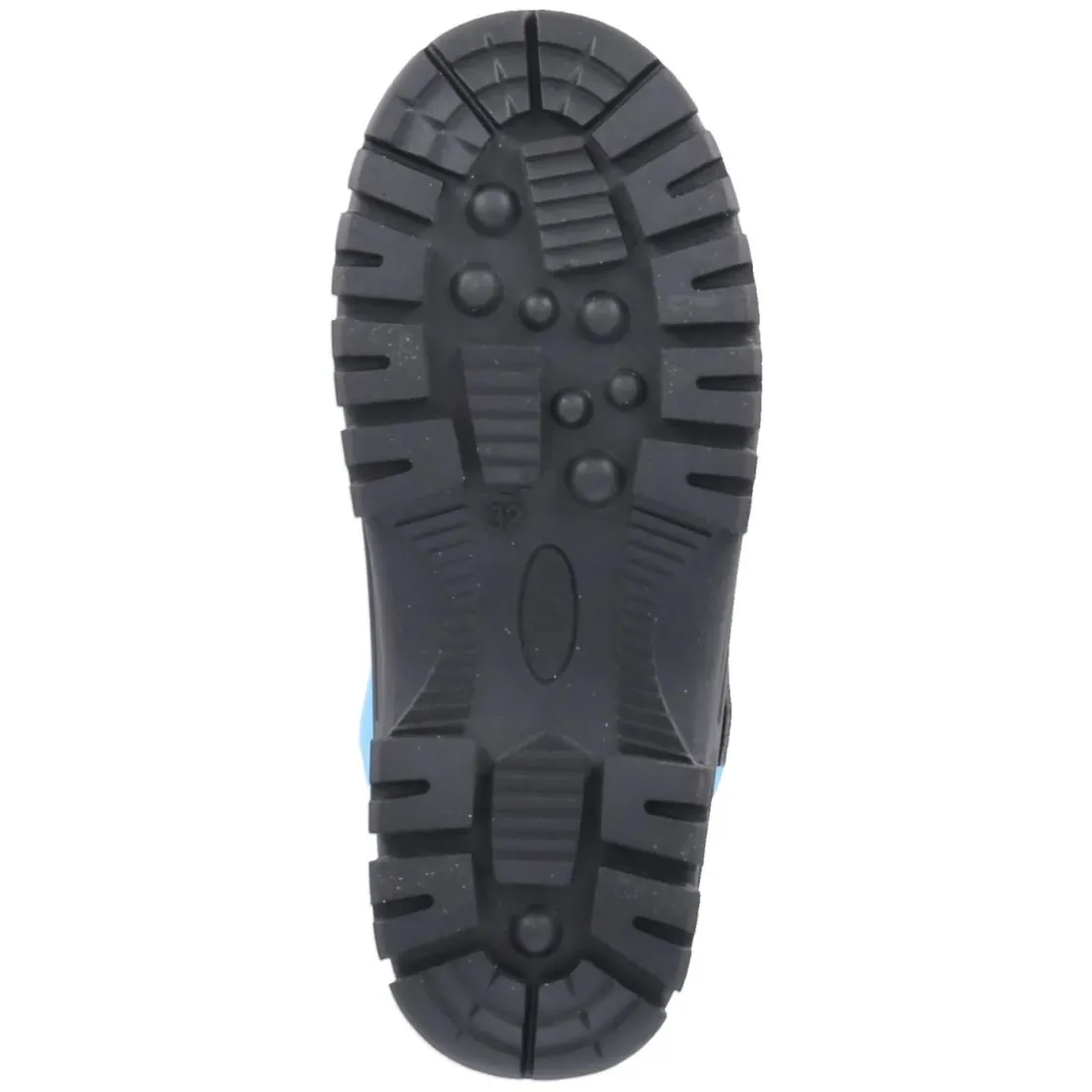 Der Snowboot FRITZI V von Lico begleitet kleine Entdecker sicher durch nasse und kalte Tage. Der blaue Stiefel kombiniert ein textiles und synthetisches Obermaterial zu einem wasserfesten, wasserabweisenden Schutzschild, während warmes Futter und ein herausnehmbarer Warmfutterstrumpf für behagliche Temperaturen sorgen. Der flexible Schnellverschluss mit Gummizug lässt sich unkompliziert fixieren, der Klettriemen reguliert die Schaftweite präzise. Ein robust verstärkter Fußrahmen unterstützt Stabilität, die rutschfeste Profilsohle gibt auf winterlichen Wegen verlässlichen Grip. Die runde Spitze und das wechselbare Fußbett erhöhen den Tragekomfort, der normale Größenlauf erleichtert die Wahl. Mit etwa 20 cm Schafthöhe und 34 cm Umfang entsteht ein schützender, zugleich beweglicher Sitz. Modetipp: Mit einer dunkelgrauen Thermohose und einer signalfarbenen Steppjacke entsteht ein funktionaler Look mit sportlichem Akzent.