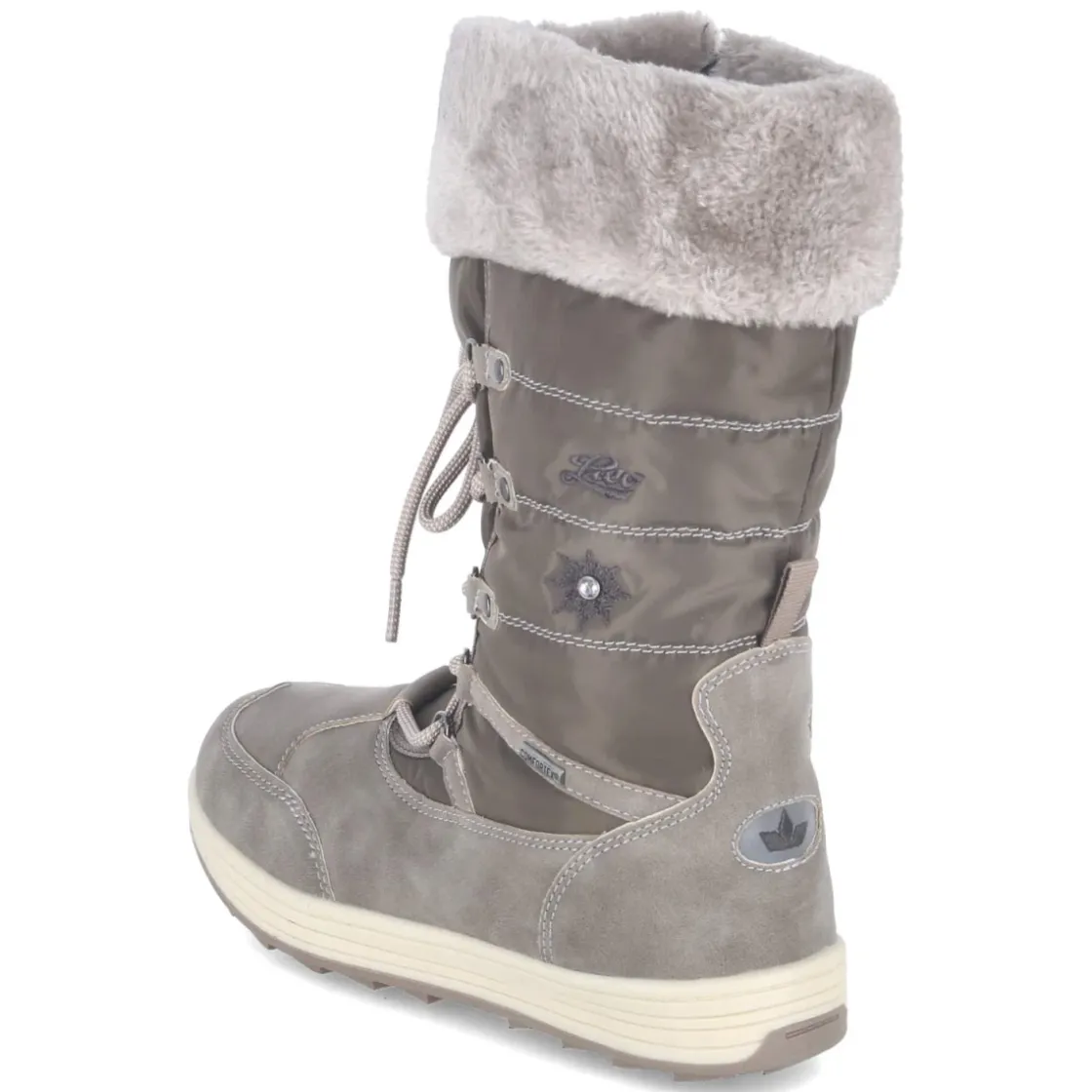 Die Snowboots NELLIE von Lico in Taupe sind zuverlässige Winterbegleiter für Kinder und verbinden Funktion mit sportlicher Optik. Das Obermaterial aus Textil und Synthetik ist wasserfest und zugleich atmungsaktiv, während warmes Futter kleine Füße an kalten Tagen behaglich einhüllt. Schnürsenkel sorgen für individuellen Halt, der seitliche Reißverschluss und die Anziehlasche erleichtern das An- und Ausziehen. Ein gepolsterter Einstieg, das weich gepolsterte, herausnehmbare Fußbett und die textile Decksohle erhöhen den Tragekomfort. Reflektierende Details steigern die Sichtbarkeit in der Dämmerung. Der verstärkte Fersen- und Zehenbereich schützt zusätzlich, der runde Leisten bietet Bewegungsfreiheit. Der gesteppten Schaft mit Kunstfellkrempe misst ca. 25 cm in der Höhe und 34 cm im Umfang. Die Passform fällt normal aus. Modetipp: Zu Parka in Naturtönen, Thermojeans und Stricksocken entsteht ein harmonischer Winterlook.