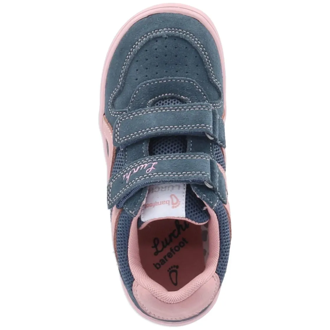 Dieser Lurchi Klettschuh für Kleinkinder verbindet verspieltes Design mit funktionalen Details. Das blaue Obermaterial aus modernem Leder-Textil-Mix erhält durch rosafarbene Highlights und dynamische seitliche Zierstreifen eine sportliche Note. Ein runder, gelochter Zehenbereich fördert die Luftzirkulation, während verstärkte Zehen- und Fersenpartien zusätzlichen Schutz im Alltag bieten. Zwei praktische Klettriemen sorgen für eine bequeme, variable Passform, der gepolsterte Einstieg schmiegt sich angenehm an. Die dünne, rutschfeste und flexible Laufsohle liefert sicheren Halt auf unterschiedlichen Untergründen. Innen überzeugt eine textile Decksohle mit gepolstertem, herausnehmbarem Wechselfußbett. Der Schuh fällt normal aus. Modetipp: Mit Denim-Latzhose und Ringelshirt entsteht ein lässiger Kindergarten-Look, eine leichte Jacke in Rosa greift die Farbakzente stimmig auf.