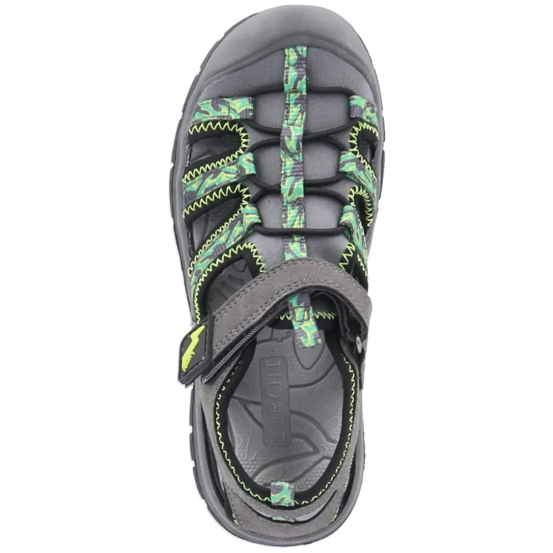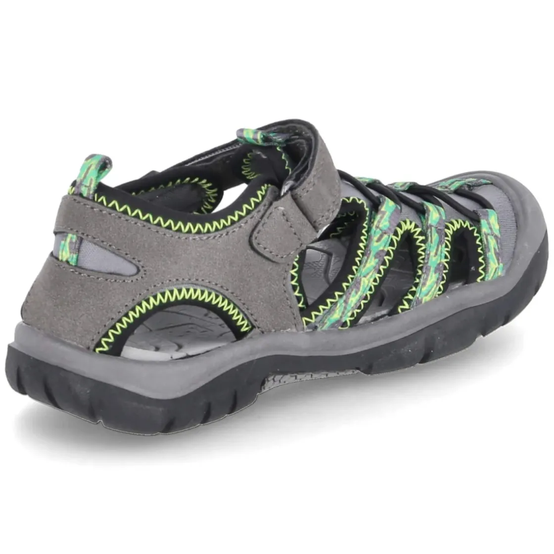 Robust und bequem: Die Lurchi Outdoorsandalen für Kinder kombinieren funktionale Details mit sportlicher Optik. Das graue Obermaterial aus Textil und Synthetik zeigt sich pflegeleicht und wird durch Ziernähte sowie grüne Highlights frisch akzentuiert. Ein Klettriemen und ein Elastikband in Schnüroptik sorgen gemeinsam mit dem bequemen Klettverschluss für einen sicheren Sitz und schnelles An- und Ausziehen. Der geschlossene Zehenbereich mit Schutzkappe bewahrt empfindliche Zehen, die runde Schuhspitze bietet viel Platz. Innen verwöhnt ein weiches, synthetisches Wechselfußbett, das bei Bedarf herausgenommen werden kann. Die flexible, griffige und rutschhemmende Profillaufsohle begleitet zuverlässig auf Spielplatz, Schulweg und Ausflug, die Passform fällt normal aus. Modetipp: Zu Cargo-Shorts und Funktionsshirt in Grau oder Grün tragen, dazu farblich passende Sportsocken für einen harmonischen Outdoor-Look.