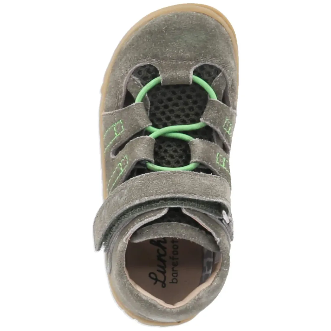 Die Sandalen NAFFI von Lurchi begleiten Kleinkinder durch aktive Sommertage und verbinden robuste Materialien mit kindgerechtem Komfort. Das Obermaterial aus weichem Rauleder und die langlebige Echtleder-Decksohle schmiegen sich angenehm an, während das Lederfutter ein ausgeglichenes Fußklima unterstützt. Ein bequemer Klettverschluss, kombiniert mit einem Klettriemen und einem Elastikband über dem Spann, sorgt für schnellen Einstieg und sicheren Halt. Der leicht gepolsterte Einstieg und der verstärkte Fersenbereich geben zusätzliche Stabilität, die runde Schuhspitze lässt Zehen Platz. Für extra Hygiene und Passform verfügt das Modell über ein herausnehmbares Lederfußbett und ein Wechselfußbett. Die flexible, griffige, rutschhemmende Laufsohle macht jede Bewegung mit, ob auf Spielplatz oder im Garten. In frischem Grün und normal ausfallend ist diese Kindersandale ein Allrounder. Modetipp: Zu Leinen-Shorts und einem hellen Printshirt entsteht ein lässiger Sommerlook.