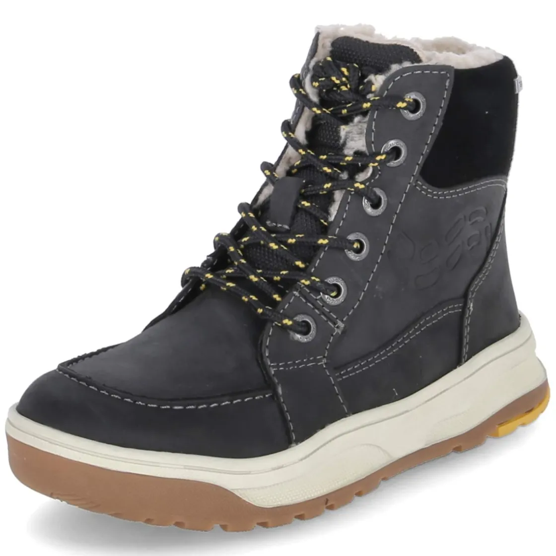 Der Winterstiefel DAJAN von Lurchi begleitet Grundschulkinder zuverlässig durch Schnee und Nässe. Robustes schwarzes Leder trifft auf warmes Textilfutter, das an kalten Tagen angenehm wärmt, während atmungsaktive Eigenschaften ein ausgeglichenes Fußklima unterstützen. Die Kombination aus Schnürung und seitlichem Reißverschluss ermöglicht einen bequemen Einstieg und sicheren Halt. Wasserfest verarbeitet und wasserabweisend ausgerüstet, schützt der Stiefel im Alltag vor Pfützen und Schneematsch. Eine flexible, rutschhemmende Profillaufsohle gibt Trittsicherheit auf glatten Wegen. Der rund geformte Zehenbereich und die verstärkte Zehen- sowie Fersenzone erhöhen Komfort und Langlebigkeit. Das textile Wechselfußbett unterstützt individuell, die Passform fällt normal aus. Modetipp: In Kombination mit einer Thermojeans, Wollmütze und einem Parka in Naturtönen entsteht ein stimmiger Winterlook.
