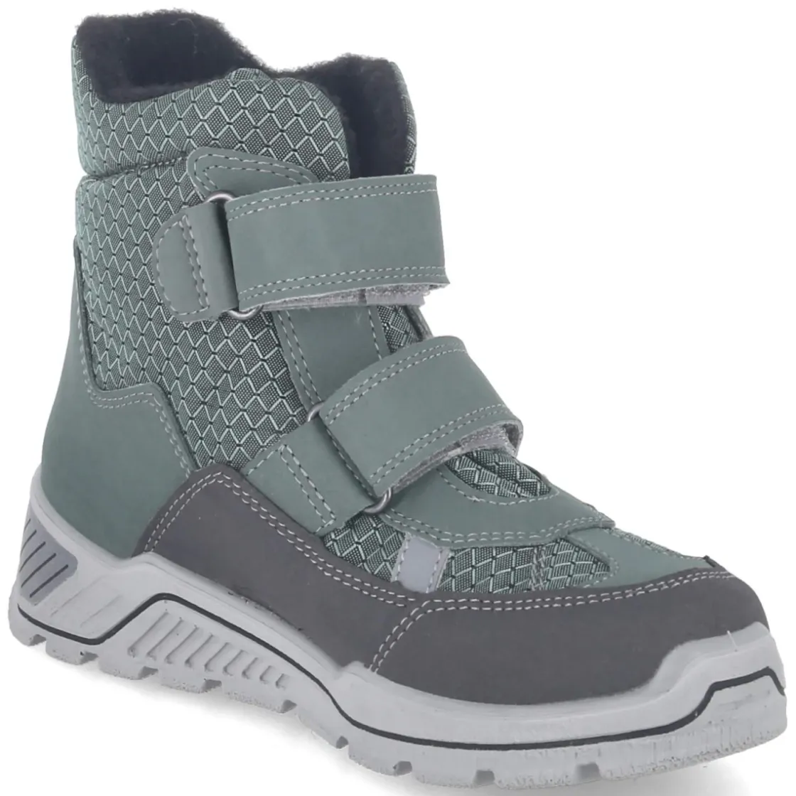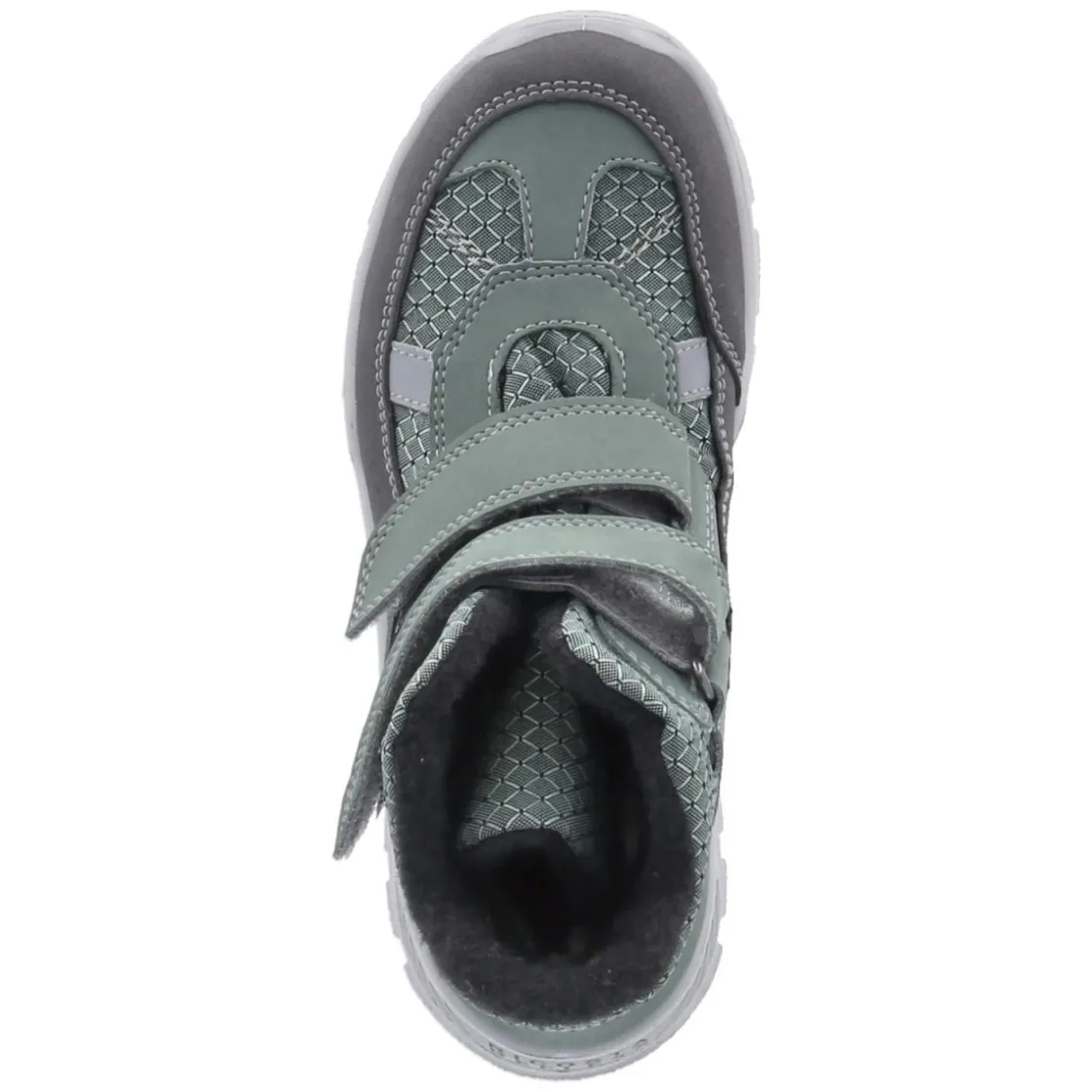 Der Schneeboot GABRIS von Ricosta bringt Grundschulkinder sicher durch nasse und kalte Tage. Das grüne, gemusterte Obermaterial aus Textil und Synthetik trifft auf eine Sympatex-Membran, die zuverlässig wasserfest und atmungsaktiv schützt. Warmfutter und gepolsterter Einstieg umschließen den Fuß angenehm, während die runde Schuhspitze und das herausnehmbare Wechselfußbett für bequemen Sitz sorgen. Dank praktischer Klettverschlüsse gelingt das An- und Ausziehen schnell, unterstützt von einer Anziehlasche. Verstärkungen an Ferse und Zehen geben zusätzliche Stabilität, die rutschfeste Profilsohle sorgt für Grip auf winterlichen Wegen. Reflektierende Details erhöhen die Sichtbarkeit in der Dämmerung. Die Passform fällt normal aus, die textile Decksohle trägt sich weich. Modetipp: Mit wattierter Funktionsjacke, Strickmütze und Thermojeans entsteht ein stimmiger Outdoor-Look, bei dem das frische Grün einen lebhaften Farbakzent setzt.