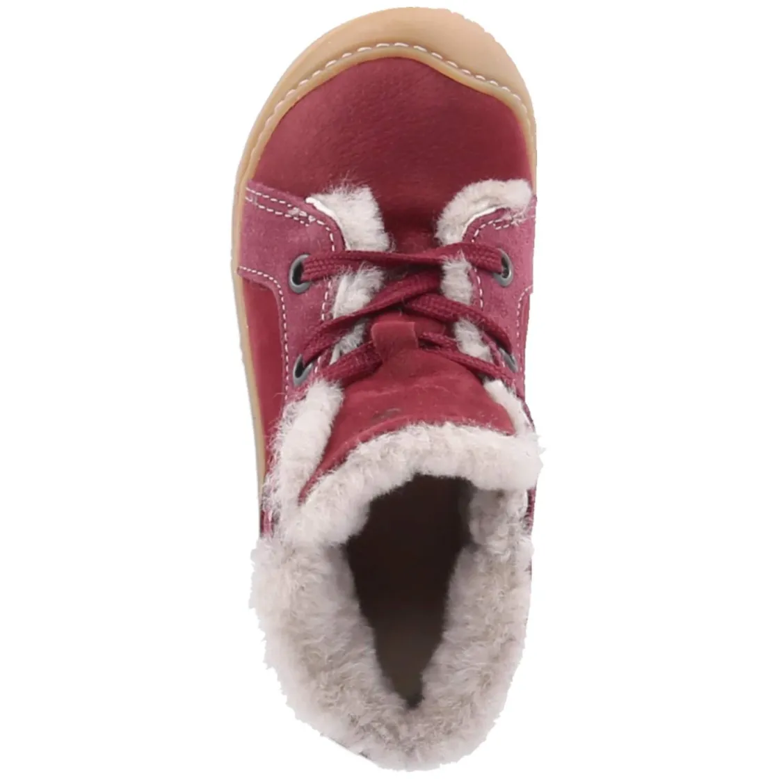 Die Winterstiefeletten ELIA von Pepino verwöhnen kleine Füße an frostigen Tagen mit warmem Lammfellfutter und spürbarem Wohlfühlfaktor. Robustes Rauleder in lebendigem Rot umschließt den Fuß, die runde Schuhspitze und der gepolsterte Einstieg geben Bewegungsfreiheit und sanften Halt. Dank verstärkter Fersen- und Zehenpartie bleibt das Modell auch bei wilden Abenteuern formstabil, während die flexible, rutschfeste Barfuß-Laufsohle ein natürliches Abrollen und sicheren Grip bietet. Die Lederdecksohle sorgt für ein angenehmes Fußklima, das herausnehmbare Fußbett erleichtert Pflege und Anpassung. Die Schnürung lässt sich exakt einstellen; der Passformhinweis fällt normal aus und eignet sich ideal für Kleinkinder. Modetipp: Zu Strickleggins, Parka und Wollmütze kommt das leuchtende Rot besonders schön zur Geltung.