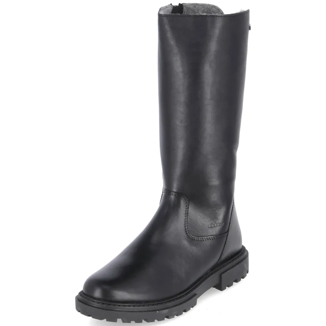 Der Winterstiefel von Richter begleitet Kinder zuverlässig durch kalte Tage: Schwarzes Glattleder trifft auf weiches Warmfutter und eine textile Decksohle für behaglichen Tragekomfort. Das Modell ist wasserfest und atmungsaktiv, sodass Nässe draußen bleibt und ein angenehmes Fußklima erhalten wird. Dank Reißverschluss gelingt der Einstieg mühelos, die runde Schuhspitze bietet Bewegungsfreiheit. Ein 3 cm hoher Blockabsatz und die flexible, rutschhemmende Profillaufsohle sorgen für Stabilität auf winterlichen Wegen, der verstärkte Fersenbereich steigert die Haltbarkeit. Das Wechselfußbett lässt sich bei Bedarf austauschen. Der Stiefel fällt normal aus und eignet sich damit für den täglichen Einsatz von Schule bis Spielplatz. Modetipp: Zu Thermojeans, Strickpullover und Parka entsteht ein lässiger, wetterfester Look.
