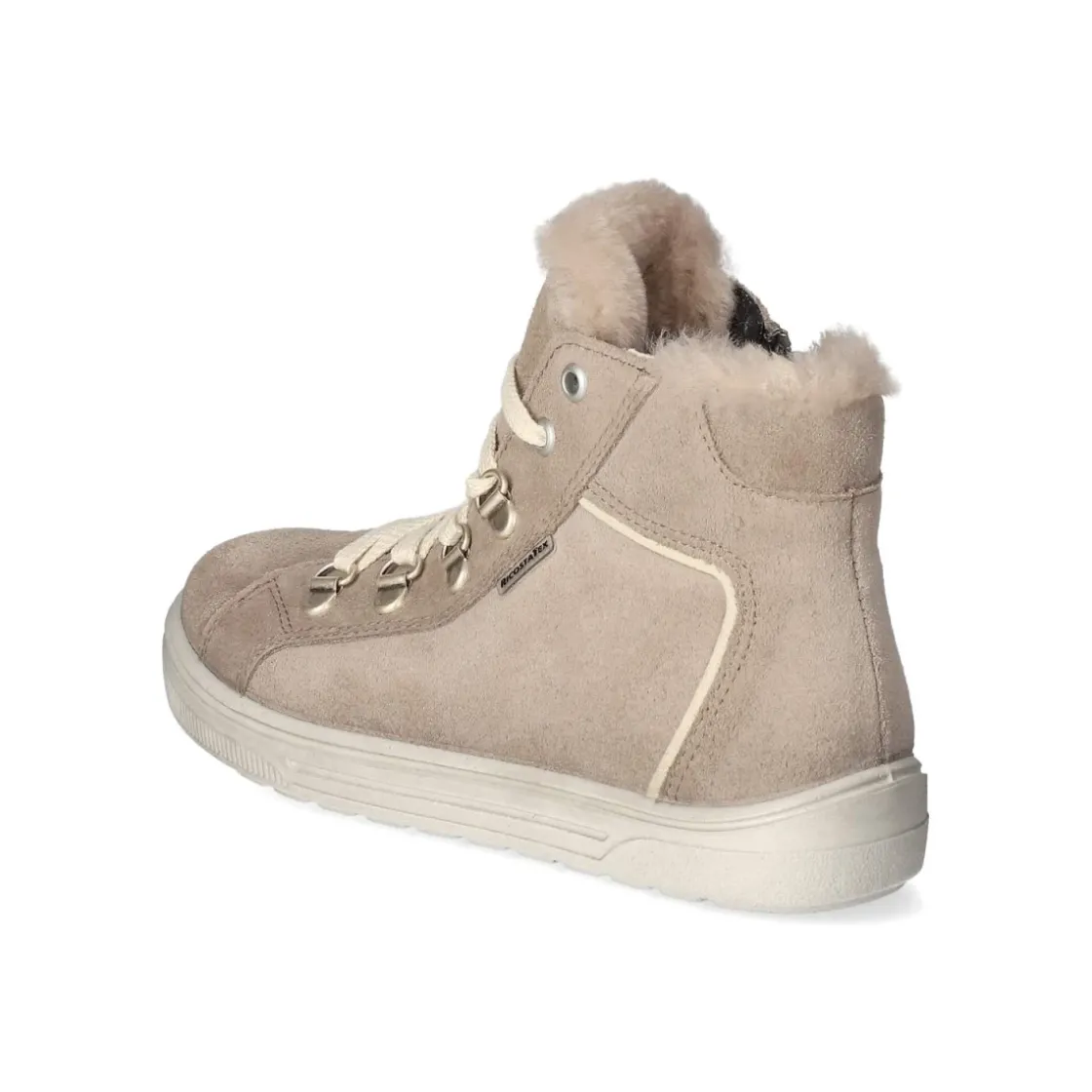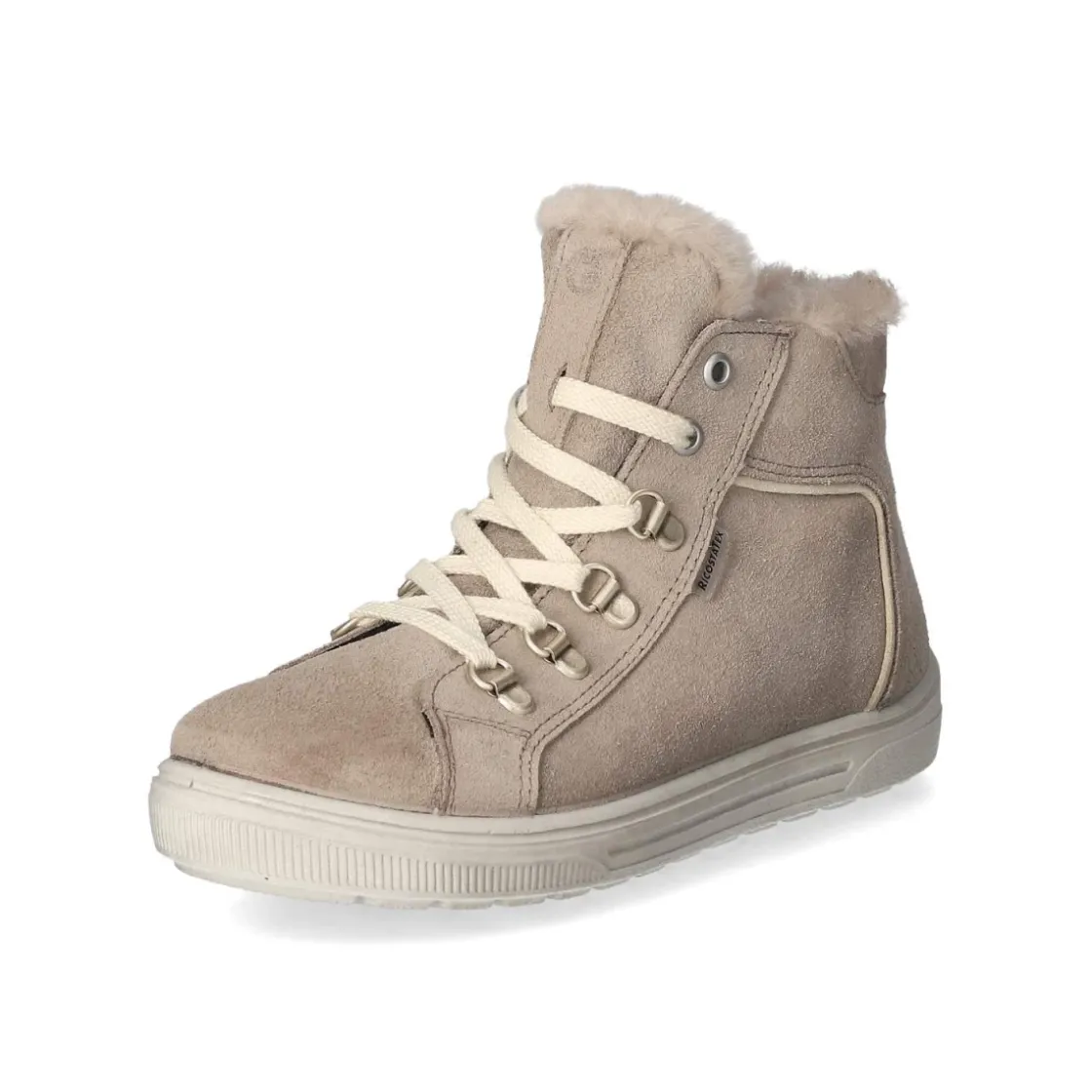 Die Schnürstiefeletten MAREN von Ricosta vereinen funktionalen Wetterschutz und kindgerechten Komfort in einem zeitlosen Taupe. Das weiche Rauleder umschließt den Fuß, während Ricosta-TEX die kleinen Schritte zuverlässig wasserfest und zugleich atmungsaktiv begleitet. Innen sorgt warmes Futter mit kuscheligem Fellbesatz am Schaft für Behaglichkeit, die textile Wechseldecksohle und das komfortable Wechselfußbett bringen zusätzliche Dämpfung und lassen sich zum Lüften einfach herausnehmen. Dank bequemen Reißverschlusseinstieg gelingt das An- und Ausziehen schnell, die Schnürung optimiert den Sitz. Die rutschhemmende, flexible Profilsohle gibt sicheren Halt, die runde Spitze schafft Zehenfreiheit. Fällt normal aus. Modetipp: Zu Cordhose, Parka in Erdtönen und groben Stricksocken entsteht ein lässiger Winterlook.