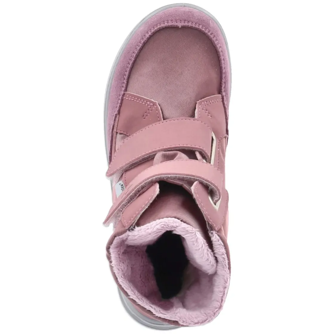 Der Winterstiefel ANNIKA von Ricosta verbindet zuverlässigen Wetterschutz mit verspielter Optik. Das Obermaterial aus Textil und Synthetik wird von einer Sympatex-Ausstattung unterstützt, die den Schuh wasserfest und zugleich atmungsaktiv macht. Eine wasserabweisende Oberfläche, warmes Futter und eine textile Decksohle sorgen für behagliches Klima an kalten Tagen. Praktische Klettverschlüsse erleichtern das An- und Ausziehen, während der runde Leisten und der verstärkte Zehen- sowie Fersenbereich zusätzliche Bequemlichkeit und Schutz bieten. Reflektierende Details erhöhen die Sichtbarkeit, die rutschfeste Laufsohle gibt Halt auf winterlichen Wegen. Highlight ist der Schaft mit Einhornmotiv und blinkenden Herzen, nicht schaltbar. Der Größenhinweis fällt normal aus. Modetipp: Zu puderrosa Schneeanzug oder cremefarbener Steppjacke kombinieren, dazu Strickmütze in Rosétönen für einen harmonischen Winterlook.