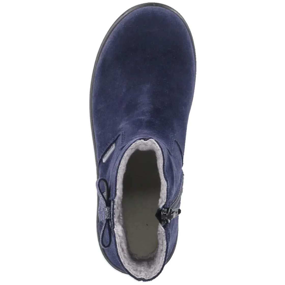 Die Winterstiefeletten ALISA von Ricosta verbinden funktionale Wärme mit liebevollen Details. Das blaue Rauleder trifft auf einen Schaft mit silbernem Glitzerstreifen und kleiner Schleife, während innen ein weiches Warmfutter für behagliches Klima sorgt. Dank Sympatex sind die Stiefel wasserfest und atmungsaktiv, ideal für nasse, kalte Tage. Der bequeme Reißverschluss erleichtert den Einstieg, die runde Spitze und der verstärkte Fußrahmen bieten zusätzlichen Tragekomfort. Eine flexible Profilsohle gibt Halt auf winterlichen Wegen. Mit WMS-Weite Mittel, normaler Passform und herausnehmbarem Wechselfußbett lässt sich die Passform gut anpassen. Modetipp: Besonders harmonisch wirkt ALISA zu einem dunkelblauen Parka, Strickleggings und einer Mütze mit dezentem Metallic-Faden, die den Glitzerakzent am Schaft aufnimmt.