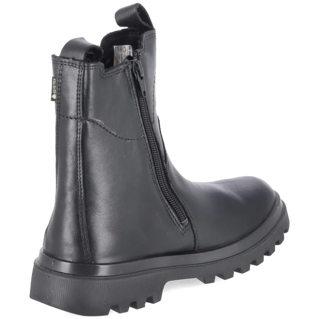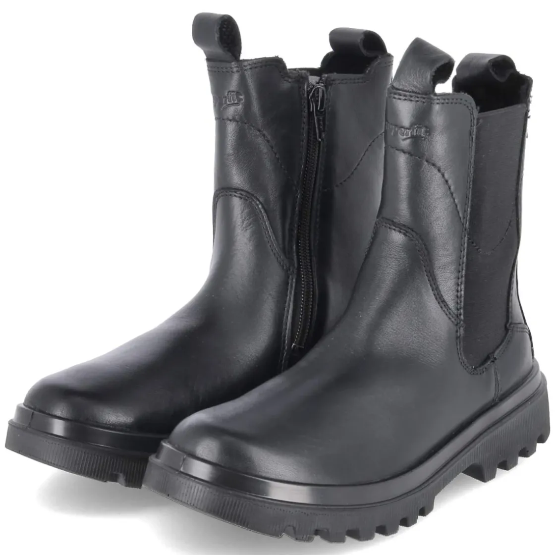 Die Chelsea Boots ABBY von Superfit verbinden robuste Alltagstauglichkeit mit klassischer Formensprache. Schwarzes Glattleder, runde Kappe und ein 3 cm hoher Blockabsatz sorgen für zeitlosen Look und sicheren Stand. Das wasserabweisende Obermaterial und die integrierte GORE-TEX Ausstattung halten kleine Füße auch bei Schmuddelwetter angenehm trocken. Der bequeme Reißverschluss erleichtert den Einstieg, unterstützt von großem Elastikeinsatz und zwei Anziehlaschen. Die rutschfeste Profilsohle greift zuverlässig auf nassem Asphalt, während die verstärkte Ferse Stabilität gibt. Mit einer Schafthöhe von ca. 15 cm und ca. 24 cm Umfang schmiegt sich der Stiefel gut an, die textile Decksohle erhöht den Tragekomfort. Das Modell fällt normal aus und bietet dank guter Kombinationsmöglichkeiten vielseitige Styling-Optionen von Kita bis Schulhof. Modetipp: Zu Thermoleggings, Flanellhemd und gesteppter Pufferjacke entsteht ein cooler, wetterfester City-Look.