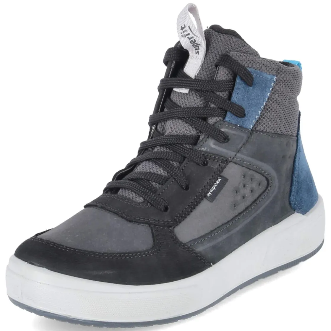 Der High Sneaker MAVERICK von Superfit verbindet robuste Funktion mit coolem Style für Grundschulkinder. Der wasserfeste Material-Mix aus Synthetik, Leder und Textil wird durch eine Sympatex-Ausstattung unterstützt, sodass Pfützen und Nieselregen gelassen bleiben. Ein leichtes Futter wärmt an kühlen Tagen, während der gepolsterte Einstieg und die runde Spitze komfortables Tragen ermöglichen. Praktisch im Alltag: Die Kombination aus Schnürsenkeln und zusätzlichem Reißverschluss ermöglicht schnelles An- und Ausziehen, Anziehlaschen helfen zusätzlich. Die rutschfeste Laufsohle sorgt für sicheren Halt auf glatten Schulhofböden, verstärkte Zehen- und Fersenbereiche erhöhen die Strapazierfähigkeit. Die textile Decksohle rundet das angenehme Fußklima ab. Der Schnitt fällt normal aus und die graue Farbe lässt sich vielseitig kombinieren. Modetipp: Zu Jeans und Steppweste wirkt der Sneaker sportlich, farbige Socken setzen einen frischen Akzent.