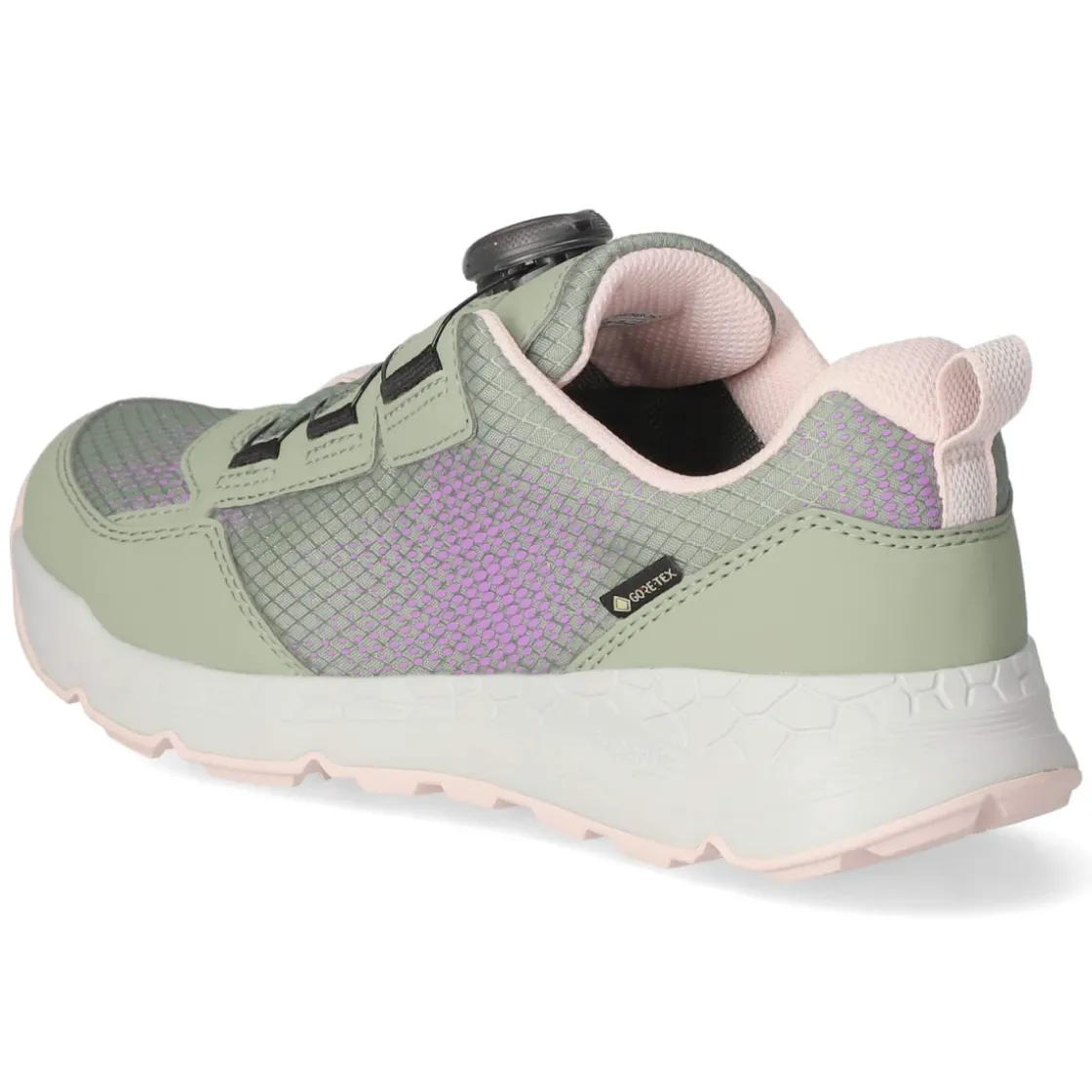 Der Outdoorschuh FREE RIDE von Superfit begleitet kleine Entdecker zuverlässig durch wechselhaftes Wetter. Das robuste Obermaterial aus Textil und Synthetik wird von einer Gore‑Tex Membran geschützt, die dauerhaft wasserfest und atmungsaktiv ist. Ein flexibler Schnellverschluss ermöglicht rasches Fixieren, während Anziehlasche und gepolsterter Einstieg das Hineinschlüpfen erleichtern. Der verstärkte Zehen- und Fersenbereich bietet zusätzlichen Schutz, die rutschhemmende, flexible Laufsohle sorgt für Trittsicherheit auf nassem Untergrund. Innen punktet ein gepolstertes, herausnehmbares Wechselfußbett mit angenehmem Komfort. In frischem Grün mit lilafarbenen Punkten und runder Spitze fügt sich der Schuh spielerisch in den Alltag ein. Die Passform fällt normal aus, Weite Mittel. Modetipp: Kombiniert mit Softshelljacke und Funktionshose in Lila- oder Grüntönen entsteht ein harmonischer Outdoor-Look.