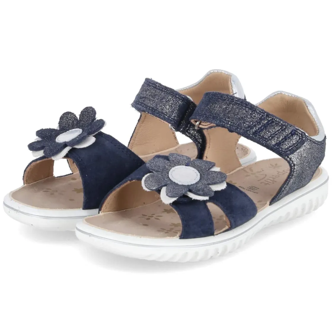 Die Sandalen SPARKLE von Superfit vereinen verspieltes Design und kindgerechten Tragekomfort. Das Modell in frischem Blau zeigt vorne eine liebevolle Blumenapplikation und silbern glitzernde Details, die jedem Sommerlook einen funkelnden Akzent geben. Das Obermaterial aus langlebigem Echtleder wird von weichem Lederfutter begleitet, während die leicht gepolsterte Lederdecksohle angenehme Dämpfung schenkt. Dank zwei praktischer Klettverschlussriemen lässt sich der Sitz schnell und präzise anpassen, die flexible, rutschhemmende Laufsohle sorgt für sicheren Halt auf Spielplatz, Schulhof und beim Familienausflug. Die offene Schuhspitze bietet luftige Leichtigkeit an warmen Tagen, und der Größenhinweis „fällt normal aus“ erleichtert die Wahl. Modetipp: Zu Denim-Shorts oder einem leichten Sommerkleid und einem Haarband mit Silberglanz kommt das funkelnde Detail besonders schön zur Geltung.