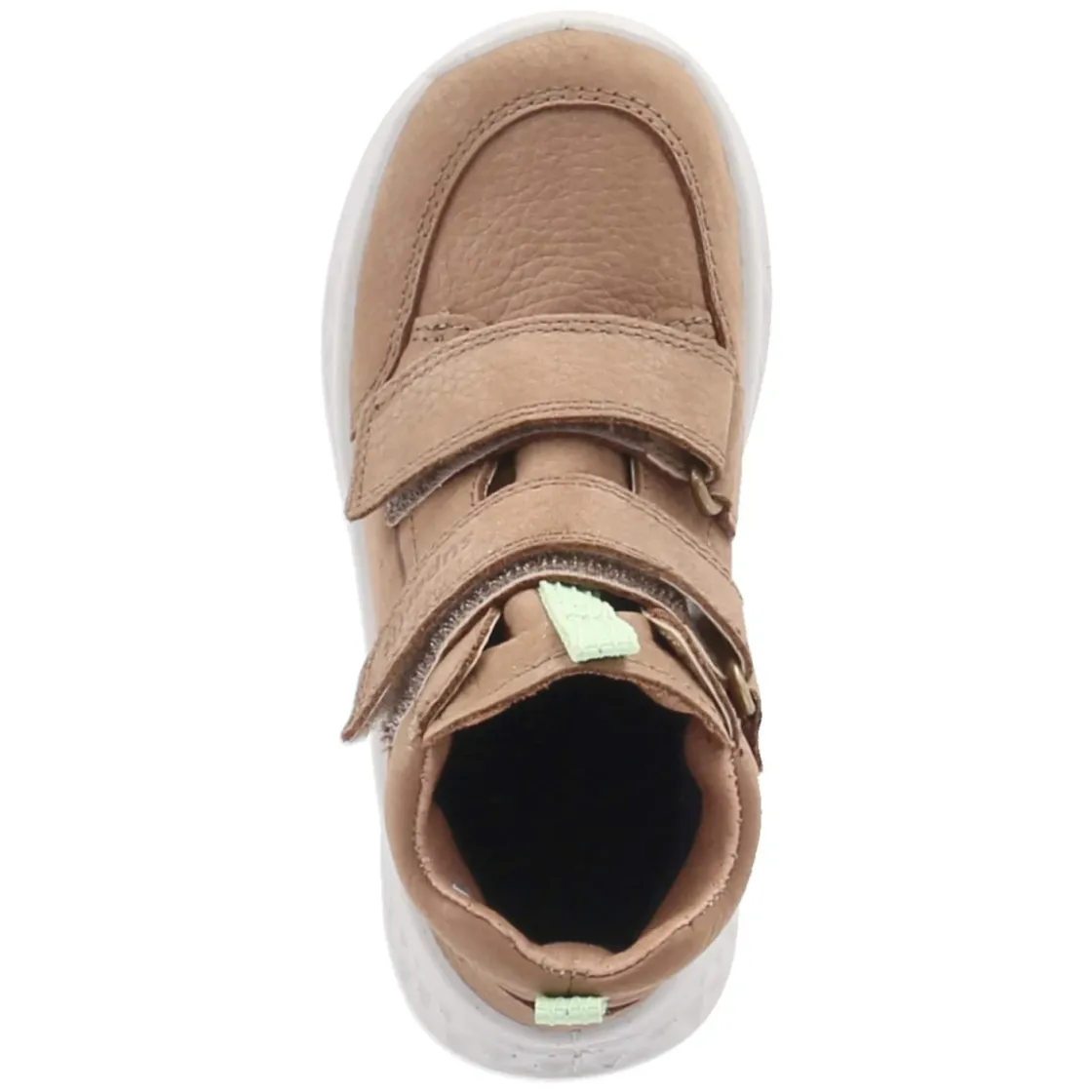 Die Superfit Stiefeletten BREEZE vereinen robuste Alltagstauglichkeit mit kindgerechtem Komfort. Weiches Rauleder in warmem Braun umschließt kleine Füße, die runde Form bietet Zehenfreiheit, während die verstärkte Fersen- und Zehenpartie zusätzlichen Schutz im Spielalltag liefert. Dank GORE‑TEX Membran bleiben Füße auch bei Pfützenspaß trocken, zugleich sorgt die Atmungsaktivität für ein ausgeglichenes Fußklima. Das leichte Futter wärmt an kühlen Tagen, der gepolsterte Einstieg schmiegt sich angenehm an. Zwei praktische Klettverschlüsse erleichtern das An- und Ausziehen, unterstützt von hellgrünen Anziehlaschen als frischer Farbakzent. Die flexible Laufsohle ermöglicht ein natürliches Abrollen, die textile Decksohle ergänzt den weichen Tritt. Größengetreu geschnitten, ideal für Kleinkinder in Bewegung. Modetipp: Zu Cordhose und kuscheligem Strickpullover entsteht ein harmonischer Look, akzentuiert mit einer Mütze in Hellgrün.