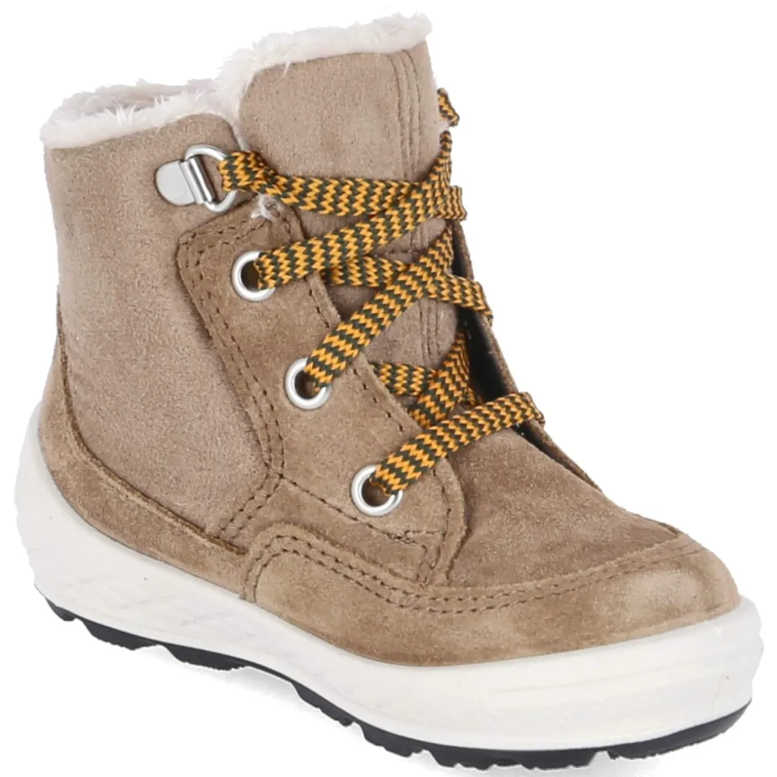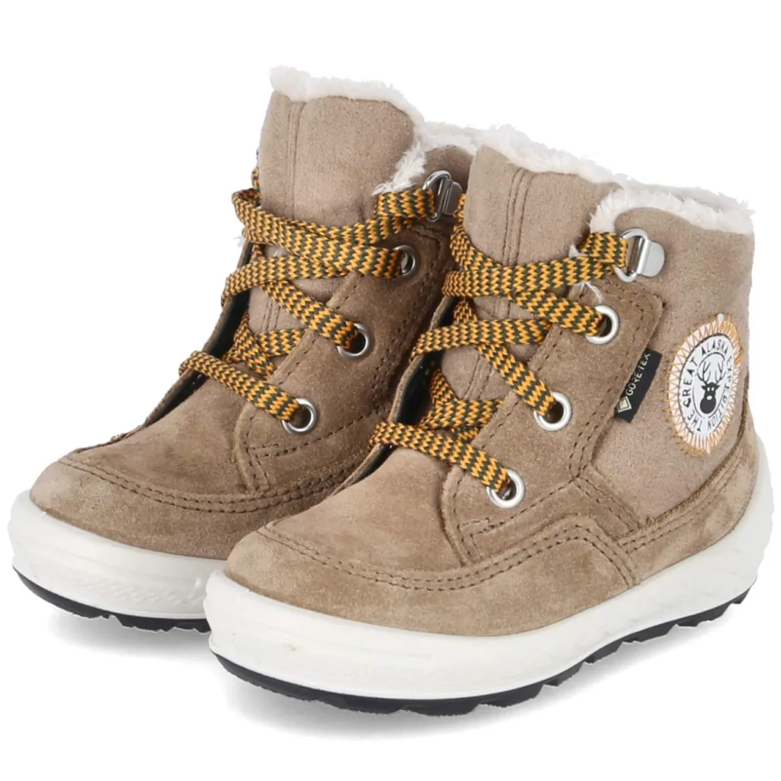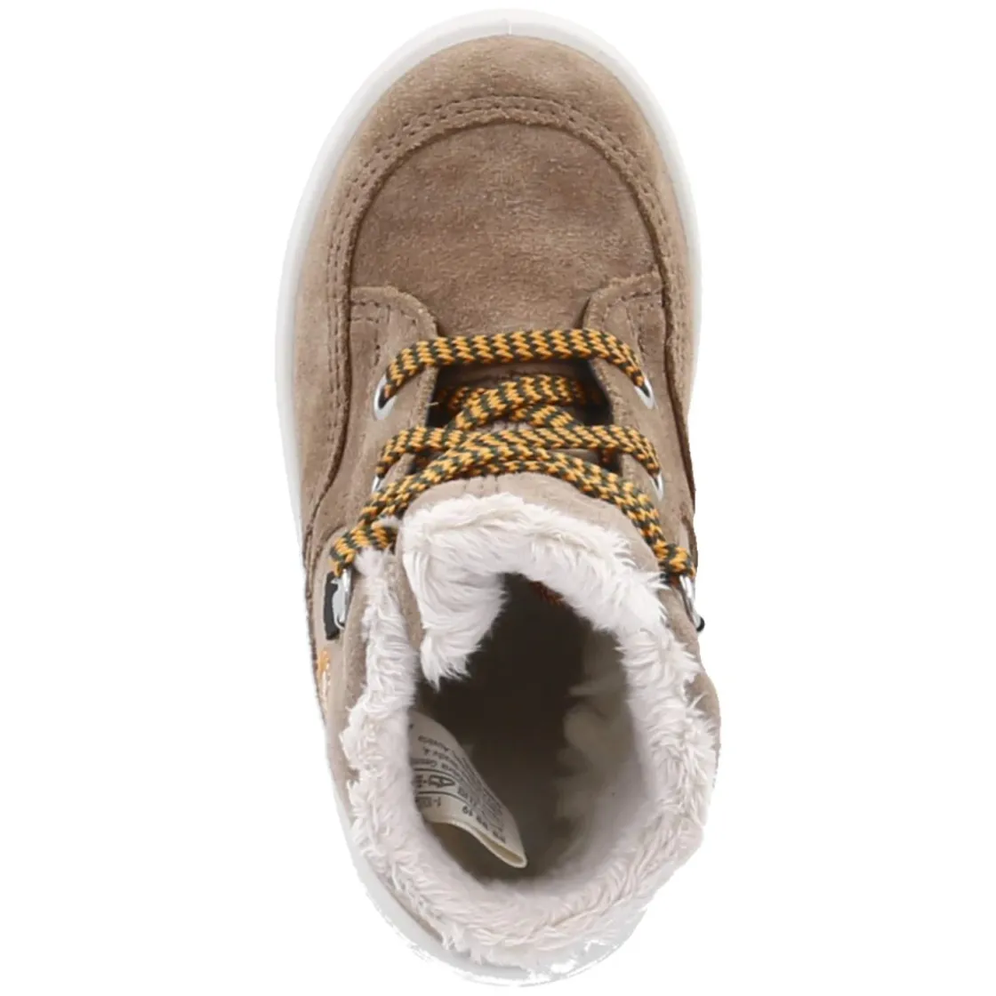 Die Stiefeletten GROOVY von Superfit verbinden kindgerechten Komfort mit verlässlichem Schutz. Das braune Obermaterial aus Leder und Textil mit Gore-Tex-Ausstattung hält Nässe zuverlässig ab, während das kuschelige Teddyfutter kleine Füße an kalten Tagen warm umschließt. Die runde Schuhspitze und der verstärkte Fußrahmen bieten Bewegungsfreiheit und Stabilität, die flexible, rutschfeste Profilsohle sorgt auf nassem Laub und glattem Untergrund für sicheren Halt. Durch die Schnürung lässt sich der Sitz individuell an Kleinkinderfüße anpassen; das Wechselfußbett unterstützt eine hygienische Pflege und passt sich wachsenden Bedürfnissen an. Liebevolle Details wie die schmale Kunstfellkrempe und der seitliche Rentierpatch setzen winterliche Akzente. Fällt normal aus. Modetipp: Zu Strickkleid, Thermostrumpfhose und wattierter Parka entsteht ein gemütlicher, wohlig-warmer Outdoor-Look.