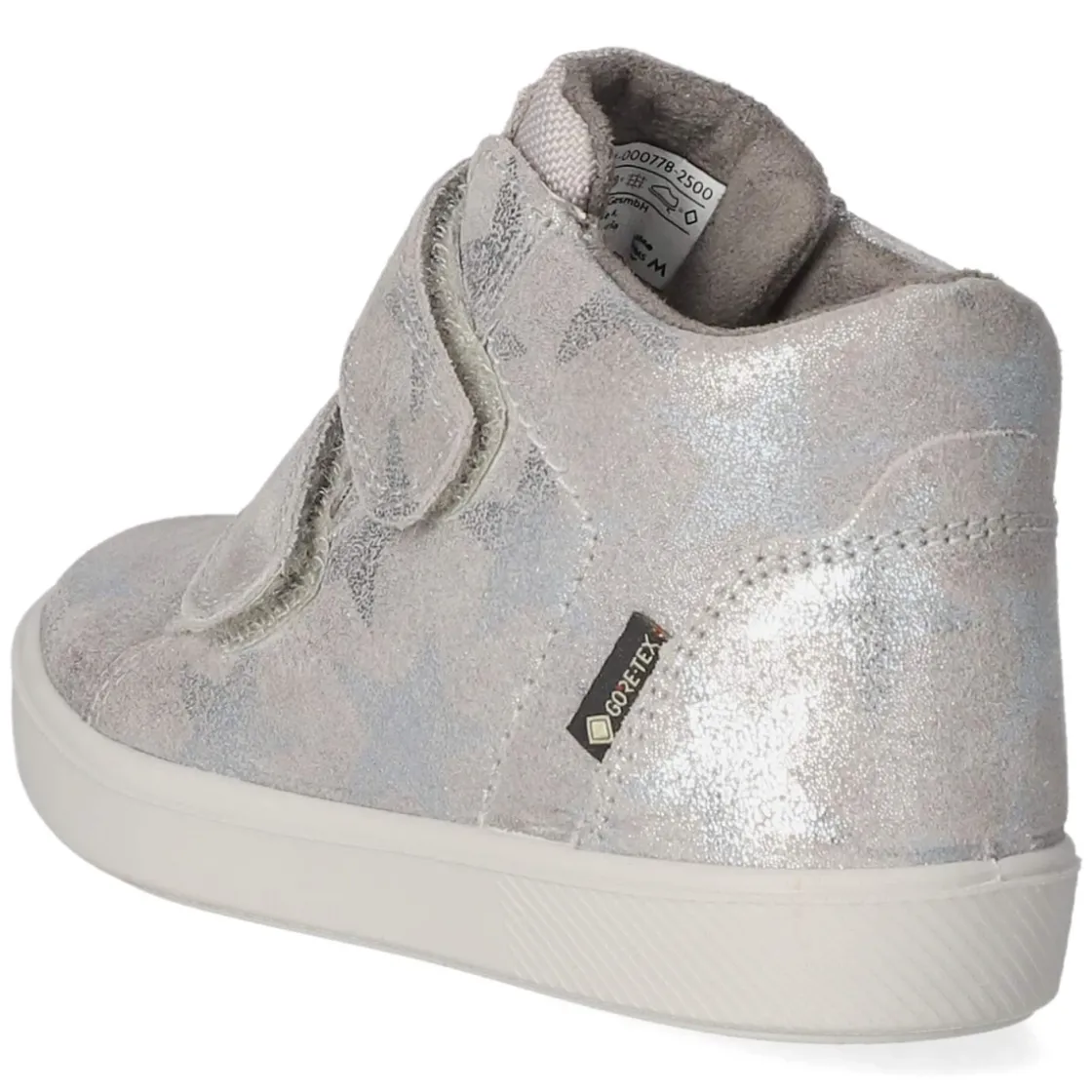 Die Stiefeletten SUPIES von Superfit bringen funkelnde Leichtigkeit in grauen Alltag: Die elegant schimmernde Oberfläche wird von hellblauen Glitzer-Sternen akzentuiert und sorgt für einen verspielten Look. Das Obermaterial aus Leder und Textil ist mit einer GORE‑TEX Ausstattung wasserabweisend und atmungsaktiv – ideal für wechselhaftes Wetter. Praktische Klettverschlüsse erleichtern das An- und Ausziehen, während die runde Schuhspitze und die verstärkte Ferse für bequemen Halt stehen. Ein leichtes Futter wärmt an kühlen Tagen, die textile Decksohle schmiegt sich angenehm an. Die flexible, rutschfeste Laufsohle unterstützt natürliche Bewegungen und gibt Sicherheit auf glatten Wegen. Der Passformhinweis fällt normal aus. Modetipp: Zu Denim, Strickcardigan und einer kuscheligen Steppjacke entstehen charmante Alltagsoutfits.