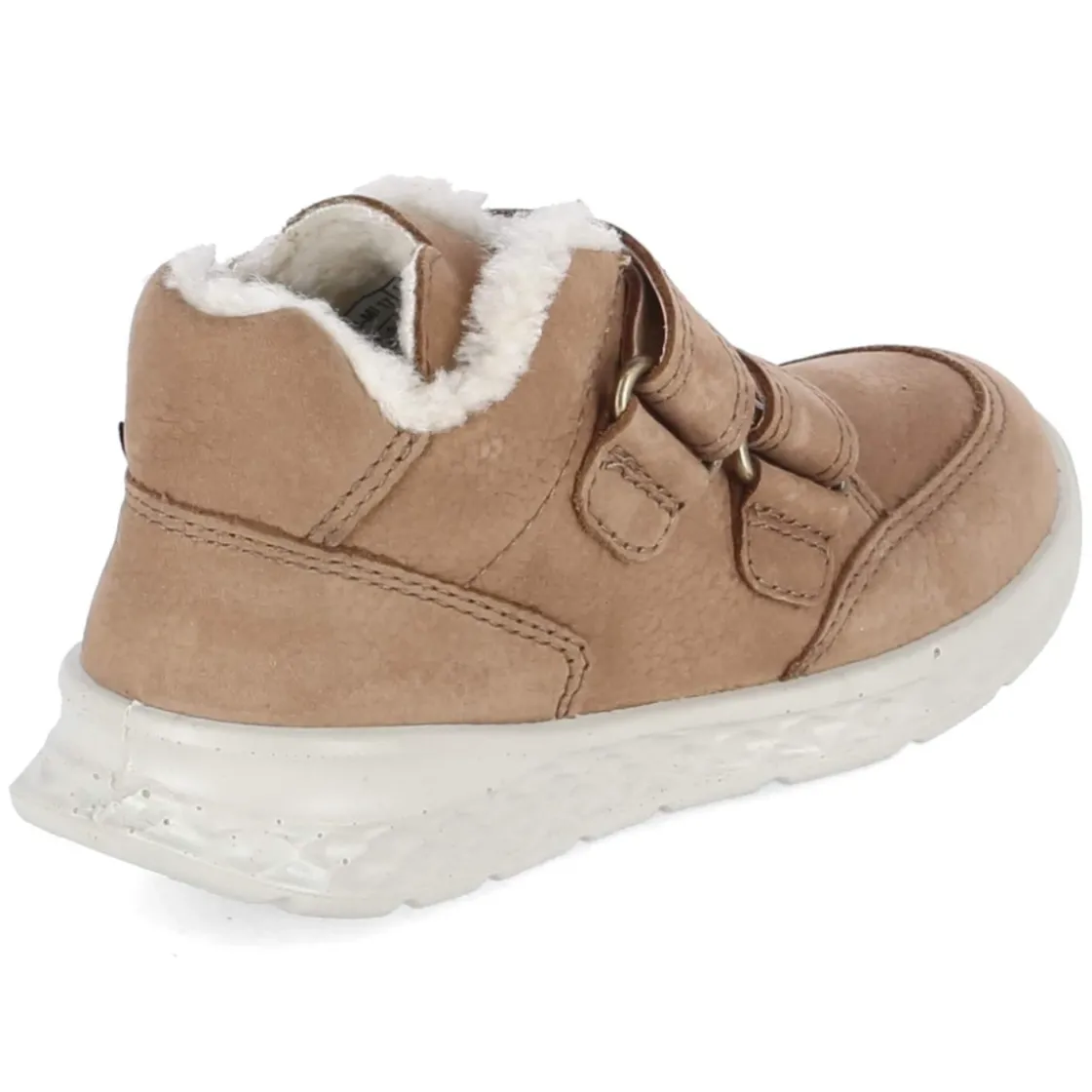 Der Superfit Winterschuh BREEZE begleitet Kleinkinder zuverlässig durch kalte Tage. Weiches Rauleder in warmem Braun trifft auf eine Goretex-Membran und ein wasserfest ausgerüstetes Obermaterial, das Feuchtigkeit effizient abhält. Das kuschelige Warmfutter speichert Wärme, während die textile Decksohle mit Wechselfußbett für individuell anpassbaren Komfort sorgt. Praktische Klettverschlüsse erleichtern das An- und Ausziehen, der gepolsterte Einstieg schont den kleinen Knöchel. Eine runde Zehenpartie gibt den Zehen Platz, verstärkte Fersen- und Zehenkappen erhöhen die Stabilität. Die flexible, rutschfeste Laufsohle greift sicher auf winterlichen Wegen, und die Passform fällt zuverlässig normal aus. Dank der dezenten Farbe lässt sich der Schuh vielseitig kombinieren. Modetipp: Zu Cordhose, Wollstrick und Beanie in Naturtönen entsteht ein zeitloser Winterlook.