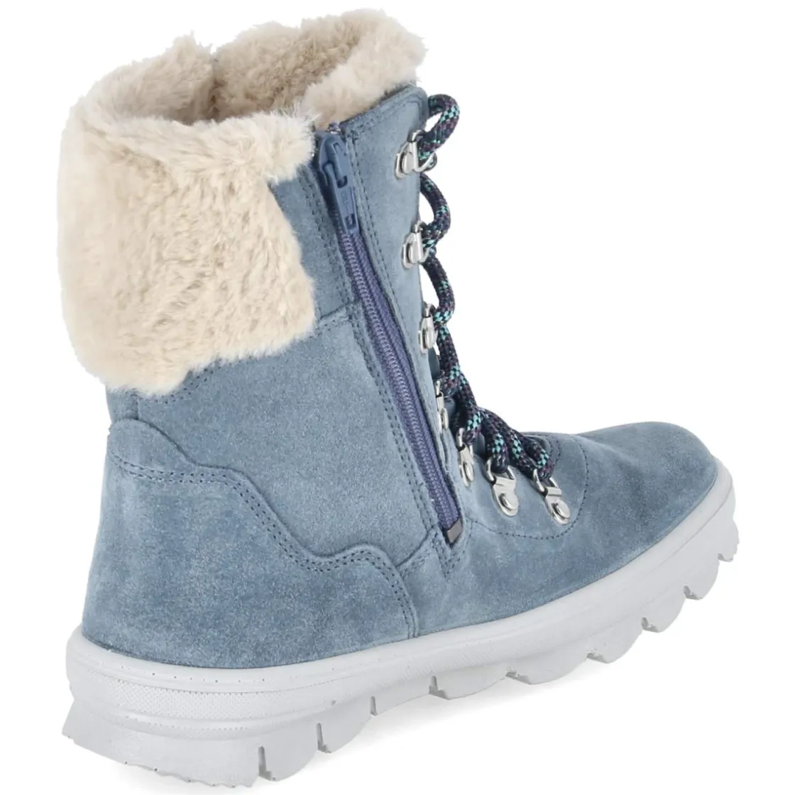 Der Winterstiefel FLAVIA von Superfit verbindet funktionale Wärme mit verspieltem Glanz. Das Obermaterial aus Leder und Textil mit Goretex-Ausstattung und wasserfestem Finish hält Feuchtigkeit zuverlässig fern, während das weiche Warmfutter und die textile Decksohle angenehme Geborgenheit spenden. Die runde Schuhspitze und der etwa 15 cm hohe Schaft mit ca. 24 cm Umfang sorgen für komfortablen Halt, die flexible Laufsohle mit Grip vermittelt Sicherheit auf rutschigen Wegen. Schnürsenkel mit glitzerndem Akzent erlauben die Feinjustierung, der zusätzliche Reißverschluss erleichtert das An- und Ausziehen. Eine verstärkte Ferse unterstützt stabile Schritte, die weiche Kunstfellkrempe setzt einen kuscheligen Akzent. Das Wechselfußbett bietet praktische Pflegevorteile und Anpassung. Modetipp: Zu Thermo-Leggings, Wollkleid und Steppmantel kombinieren, dazu Stricksnood in Blautönen für einen harmonischen Winterlook.