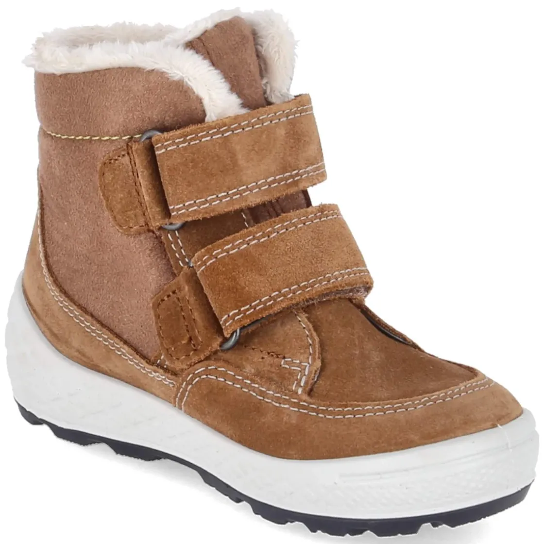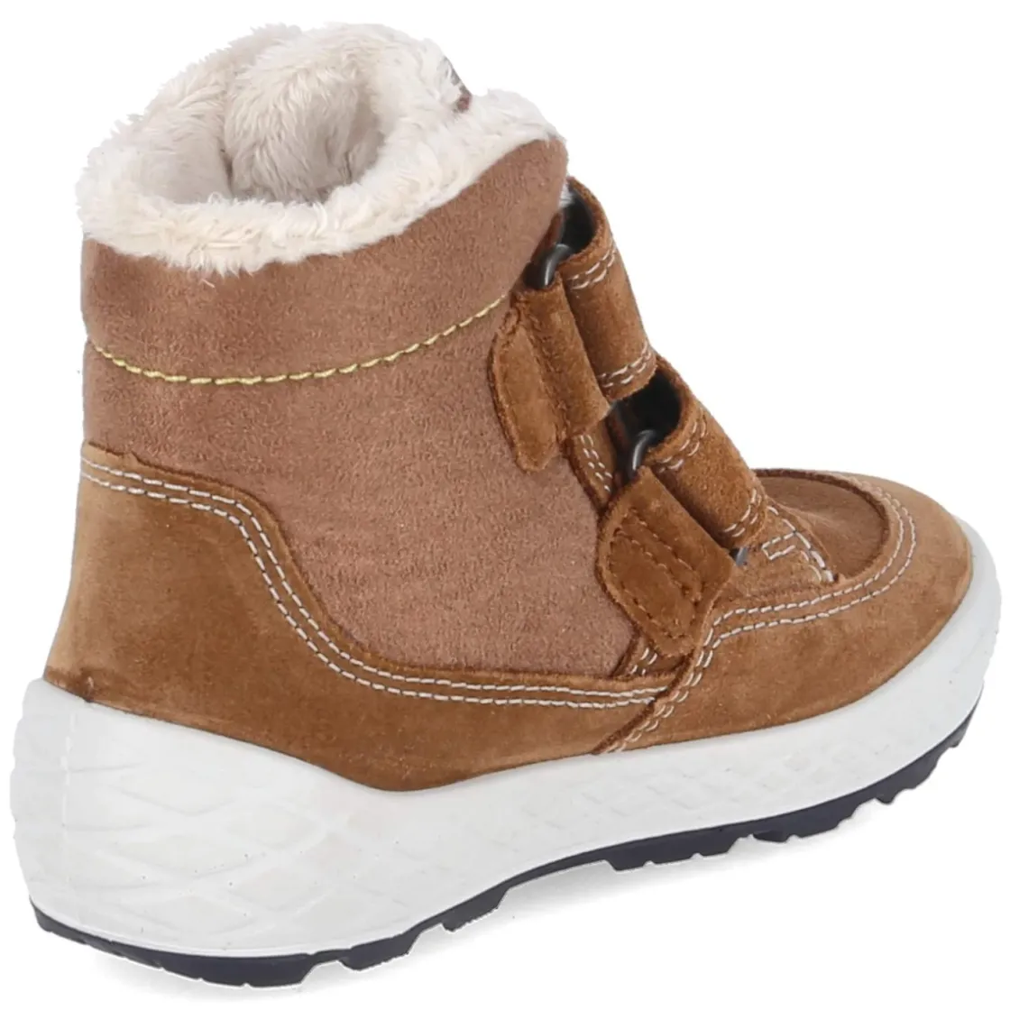 Die Winterstiefeletten GROOVY von Superfit begleiten Kleinkinder zuverlässig durch nasse und kalte Tage. Ein warmes Futter umschließt den Fuß gemütlich, während die GORE-TEX Ausstattung Feuchtigkeit fernhält und das wasserfeste Obermaterial aus Leder und Textil widerstandsfähig macht. Der abgesteppte Außenschaft setzt einen dezenten Akzent, die runde Schuhspitze bietet viel Zehenfreiheit. Zwei praktische Klettverschlüsse erleichtern das An- und Ausziehen, selbst mit Fäustlingen. Die flexible, profilierte Laufsohle sorgt für sicheren Halt auf rutschigen Wegen, der verstärkte Fußrahmen schenkt zusätzliche Stabilität. Ein herausnehmbares Wechselfußbett ermöglicht individuelle Anpassung und erleichtert das Lüften. Das Modell fällt größengetreu aus und harmoniert in Braun mit vielen Winterfarben. Modetipp: Mit Wollstrumpfhose, Cord-Latzhose und Steppjacke entsteht ein lässiger, zugleich funktionaler Outdoor-Look.
