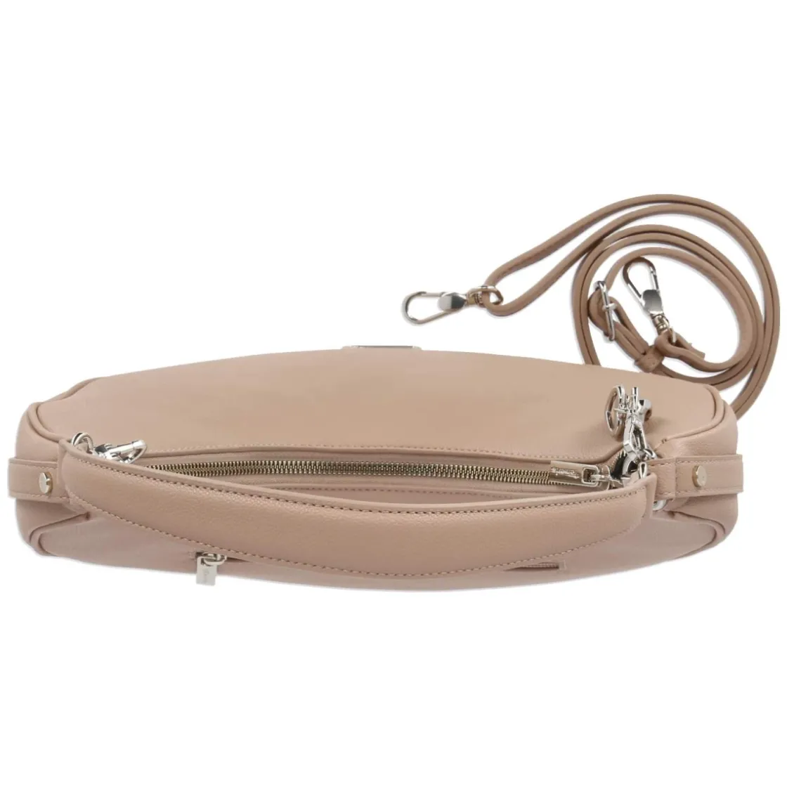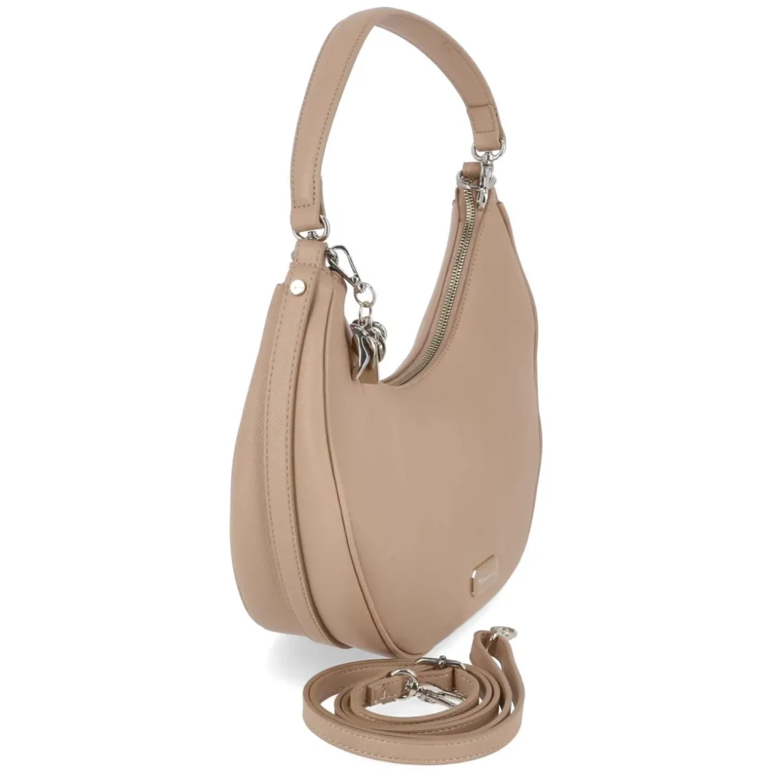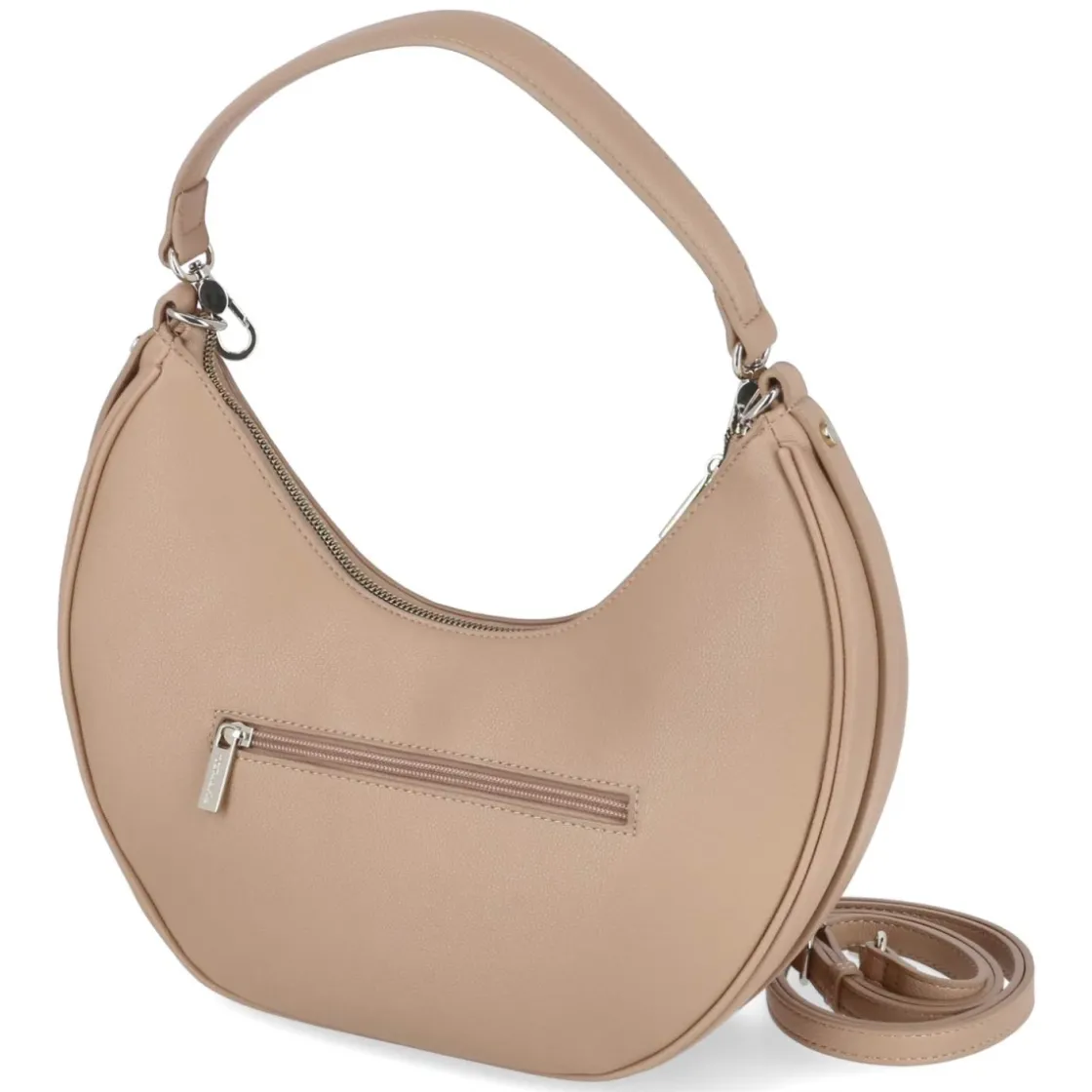 Die Hobo Bag KATHARINA in elegantem Beige verbindet lässige Silhouette mit durchdachter Funktion. Die hochgezogenen Enden verleihen dem weich fallenden Design eine moderne Note, während Logo und Anhänger dezente Akzente setzen. Mit kompakten Maßen von ca. 17 x 30 x 10 cm und einem Volumen von rund 5 Litern bietet die Tasche ausreichend Platz für Alltagsessentials. Ein sicherer Reißverschluss schließt das Hauptfach, innen sorgen ein Steckfach und ein zusätzliches Reißverschlussfach für Ordnung. Hinten ergänzt ein weiteres Reißverschlussfach den praktischen Aufbau. Dank kurzem Gurt von ca. 30 cm lässt sich die Tasche nah am Arm tragen, der verstellbare Schultergurt bis ca. 140 cm ermöglicht vielseitiges Crossbody- oder Schulter-Tragen. Modetipp: Ton-in-Ton mit sandfarbenem Trench, feinem Strick in Creme und Loafern kombinieren – so wirkt das Beige besonders edel und die Hobo-Form kommt entspannt zur Geltung.