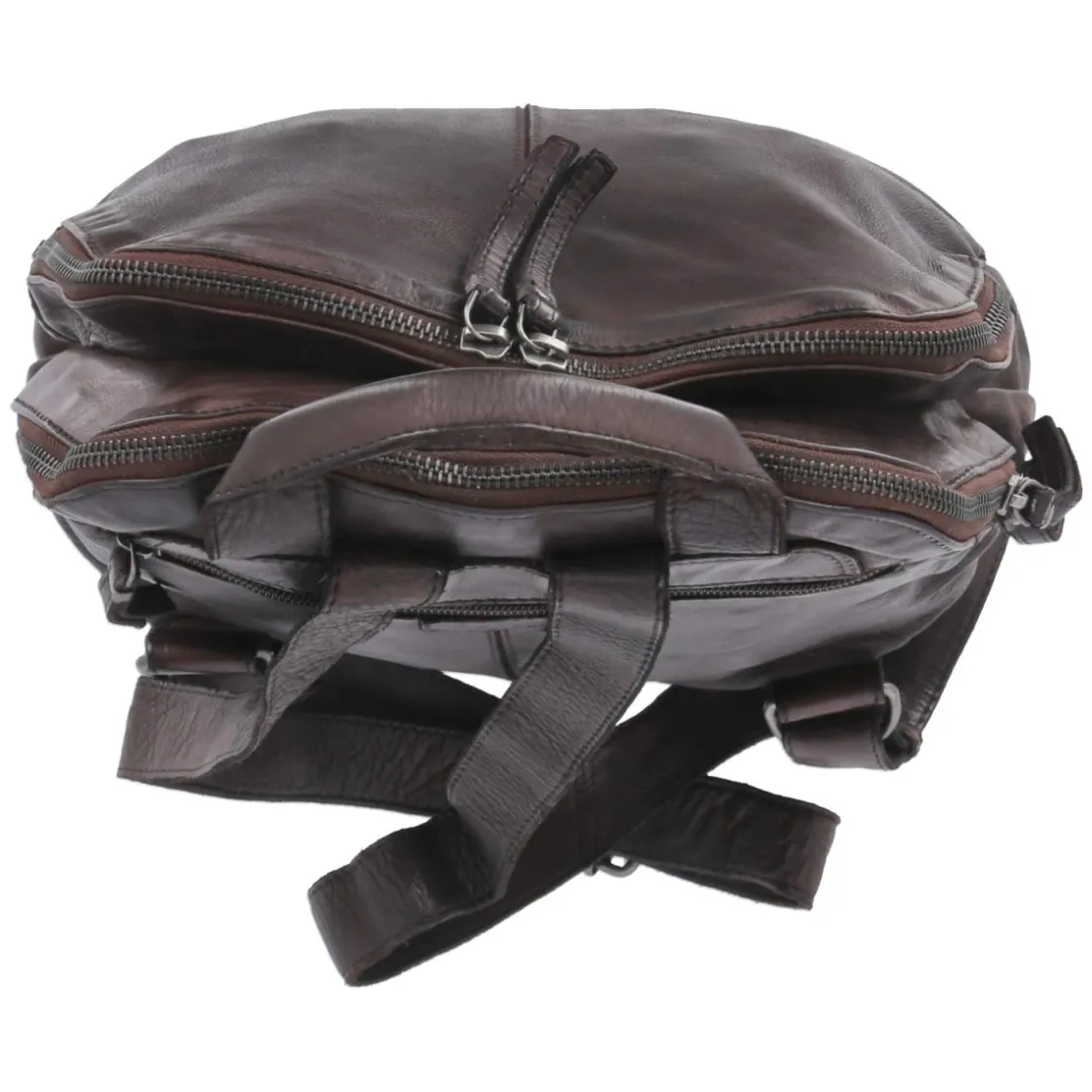 Dieser Damenrucksack in warmem Braun überzeugt mit einer elegant dunkleren Nuance und einer markanten Mittelnaht, die die klare Silhouette unterstreicht. Zwei Reißverschluss-Hauptfächer bieten strukturierten Stauraum, ergänzt durch ein praktisches Rückenfach für Wertvolles. Innen sorgen zwei Reißverschlussfächer, zwei Steckfächer und ein eigener Stiftplatz für Ordnung. Mit ca. 30 x 26 x 12 cm und rund 9 Litern Volumen ist das Format ideal für Alltag und City. Der verstärkte Boden verleiht Standfestigkeit, verstellbare Trageriemen bis etwa 85 cm sichern komfortablen Sitz. Die hochwertige Verarbeitung der Reißverschlüsse rundet das funktionale Design ab, während die dunkelbraunen Akzente den zeitlosen Charakter betonen. Modetipp: Besonders stimmig zu Camel-Mänteln, cremefarbenen Strickteilen und cognacfarbenen Ankle Boots für einen harmonischen Ton-in-Ton-Look.