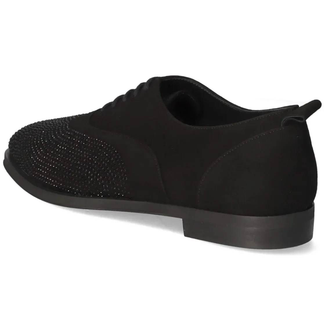 Die Schnürschuhe von 42Plus verbinden italienische Handwerkskunst mit modernem Glanz. Feines Rauleder mit elegant schimmernder Oberfläche bildet die Bühne für schwarz glänzende Schmucksteine und sorgfältig gesetzte Ziernähte. Das angenehme Lederfutter und die leicht gepolsterte Lederdecksohle sorgen für Komfort, während die flexible Laufsohle und der 3 cm hohe Blockabsatz entspannt durch den Tag tragen. Eine praktische Anziehlasche und die Schnürung für eigene Anpassung erleichtern den Einstieg und sichern den Halt; verstärkter Zehen- und Fersenbereich erhöht die Langlebigkeit. Die runde Schuhspitze wirkt klassisch-feminin, die Passform fällt normal aus. Made in Italy und hochwertig verarbeitet sind diese Damen-Schnürschuhe ideale Begleiter für Erwachsene im Office und am Abend. Modetipp: Mit cropped Anzughose und Stricktop kombinieren, dazu ein schwarzer Ledergürtel für einen harmonischen Look.