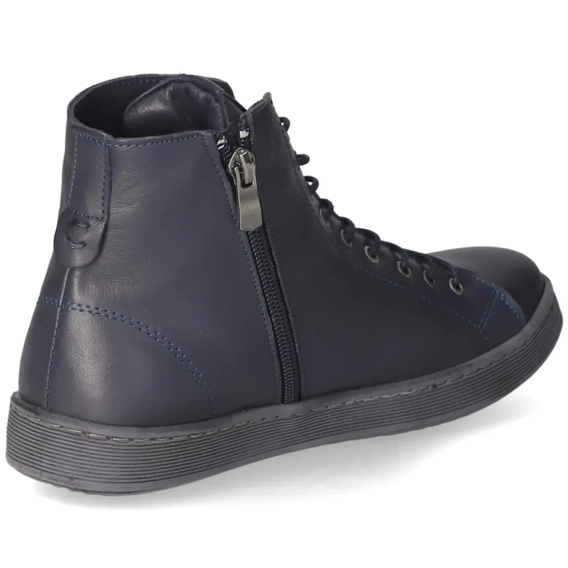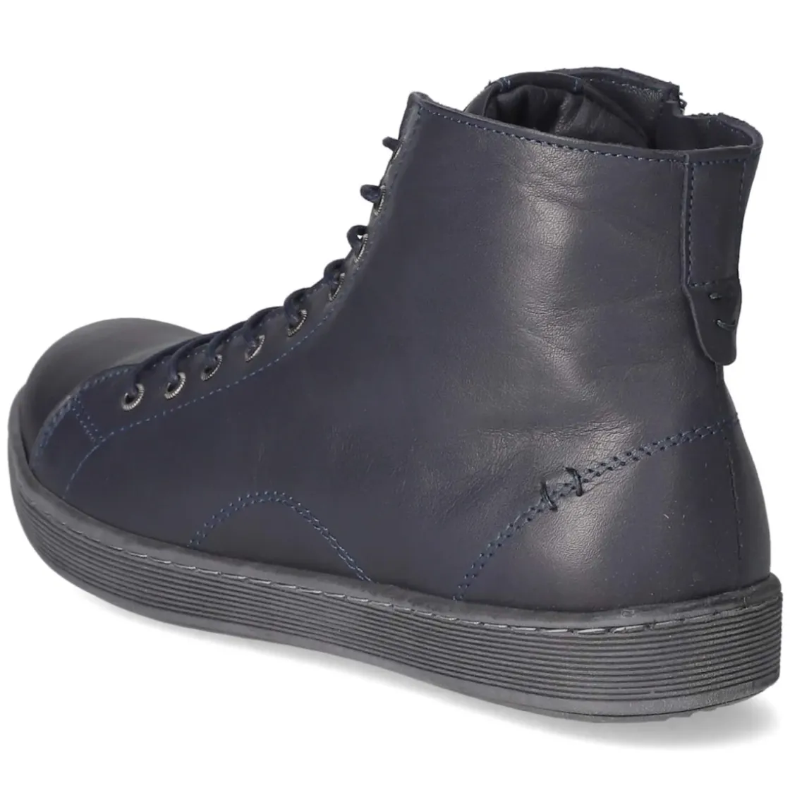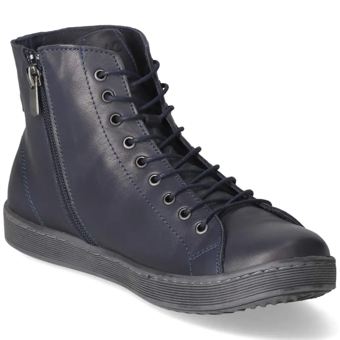 Diese blauen Schnürstiefeletten von Andrea Conti verbinden markantes Design mit alltagstauglichem Komfort. Glattes, atmungsaktives Echtleder umschließt den Fuß weich und zeigt mit modischen Ziernähten sowie dezenten, metallischen Akzenten eine feminine Note. Die runde Spitze bietet Zehenfreiheit, die verstärkte Ferse sorgt für Stabilität. Schnürsenkel gewährleisten die individuelle Anpassung, der zusätzliche Reißverschluss erleichtert den schnellen Einstieg. Die lederne Decksohle und das komfortable, herausnehmbare Wechselfußbett unterstützen ein angenehmes Tragegefühl, während die flexible, rutschfeste Laufsohle sicheren Halt verleiht. Da das Modell normal ausfällt, gelingt die Größenwahl unkompliziert. Modetipp: Besonders edel wirkt das tiefe Blau zu verkürzten Straight-Jeans, Feinstrick in Creme und einer Crossbody-Bag mit silberfarbenen Details, die die metallischen Highlights aufgreifen.