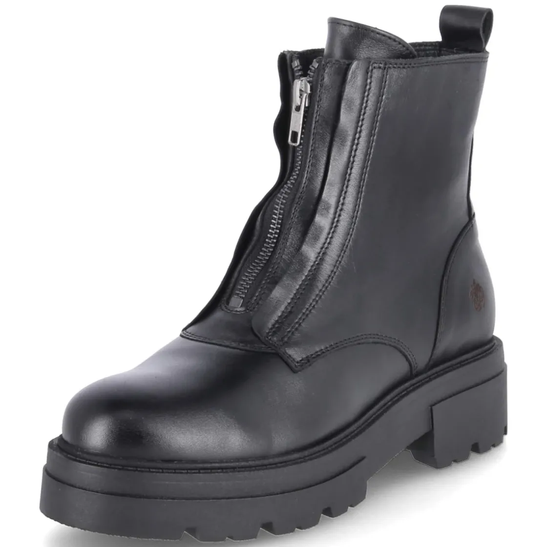 Die Combat Boots STAR 1 von Apple of Eden verbinden markanten Look mit komfortorientierten Details. Schwarzes Glattleder mit langlebiger Qualität sorgt für eine hochwertige Anmutung, während die runde Schuhspitze und die hautfreundliche Lederdecksohle angenehmen Tragekomfort bieten. Der 5 cm hohe Blockabsatz schenkt stabilen Halt und einen dezenten Lift, ohne die Alltagstauglichkeit zu verlieren. Dank praktischem Reißverschluss gelingt der Einstieg mühelos, die Passform fällt normal aus. Ein verlässlicher Begleiter für urbane Styles, der robuste Charme und feminine Linien geschickt ausbalanciert. Modetipp: Als lässiger Stilbruch zu Midikleid und Oversize-Strick kombinieren oder mit Skinny-Jeans, Rollkragen und Wollmantel für ein zeitloses City-Outfit inszenieren.
