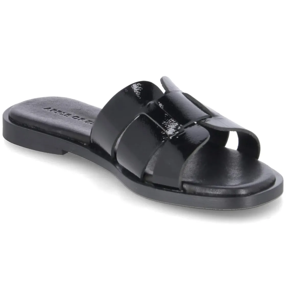 Die Pantoletten ALYCIA von Apple of Eden setzen auf klare Linien und eine elegante Lackoptik, die dem zeitlosen Schwarz zusätzlichen Glanz verleiht. Das offene Design lässt den Fuß luftig wirken, während das gepolsterte Fußbett gemeinsam mit der Lederdecksohle für spürbaren Komfort sorgt. Dank des unkomplizierten Schlupfeinstiegs wird stilvolle Lässigkeit zum täglichen Begleiter – ob im Büro, beim Stadtbummel oder zum Dinner. Die Form fällt normal aus und erleichtert die Größenauswahl. Durch das edle Lackleder wirken die Pantoletten feminin und hochwertig, zugleich lassen sie sich aufgrund der neutralen Farbgebung vielseitig zu bestehenden Garderoben kombinieren. Modetipp: Zum monochromen Ensemble mit weiter Anzughose und Satinbluse stylen und mit einer feinen Knöchelkette einen modernen Akzent setzen.