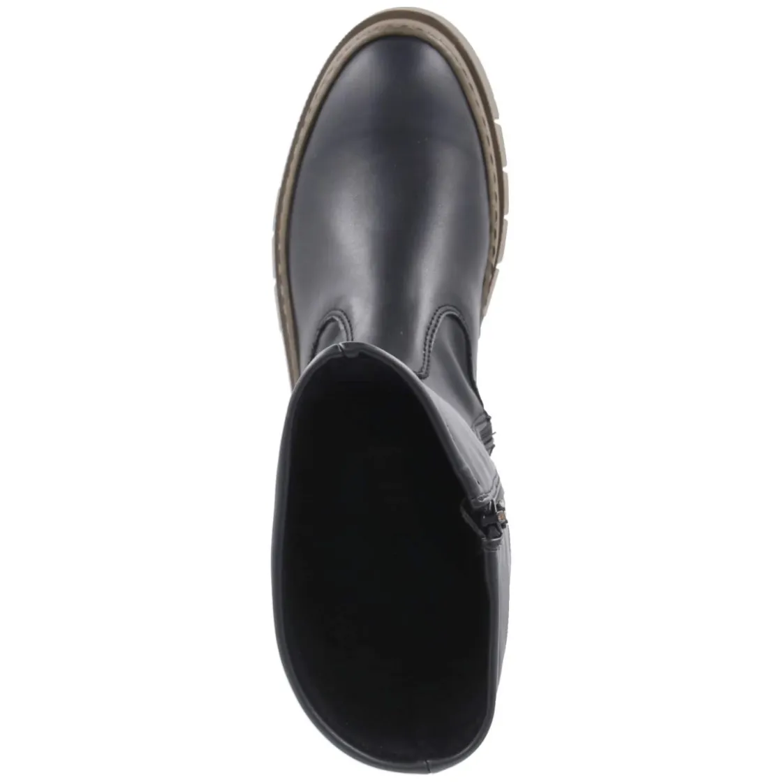 Der Stiefel AMBERES von Art zeigt einen charakterstarken Mix aus Leder und Synthetik und setzt mit seiner runden Spitze und dem 5 cm hohen Plateau ein modisches Statement. Der leicht stretchige Schaft mit ca. 34 cm Höhe und 34 cm Umfang schmiegt sich angenehm an, während ein leichtes Futter Wärme an kühlen Tagen spendet. Für bequemes An- und Ausziehen sorgt der seitliche Reißverschluss, die verstärkte Ferse stabilisiert bei jedem Schritt. Das Wechselfußbett erhöht den Tragekomfort und lässt sich individuell austauschen. Highlight ist die starke, rutschhemmende Laufsohle in Olivegrün, die dem schwarzen Design eine moderne Note gibt. Modetipp: Zu Strickkleid und Wollmantel entsteht ein eleganter City-Look; mit blickdichter Strumpfhose und Oversize-Pullover wird der Plateau-Stiefel zum lässigen Kontrastgeber.