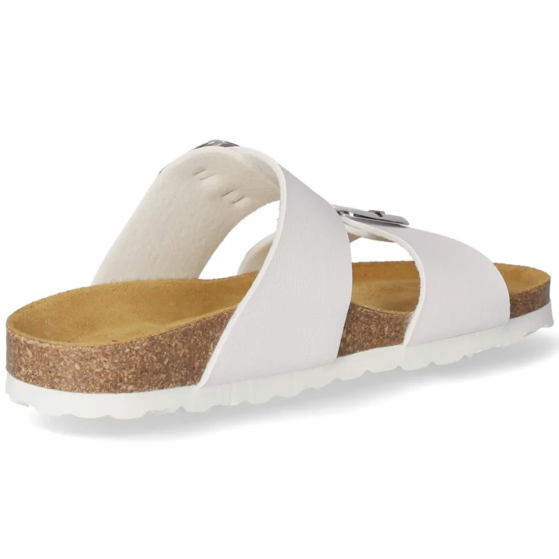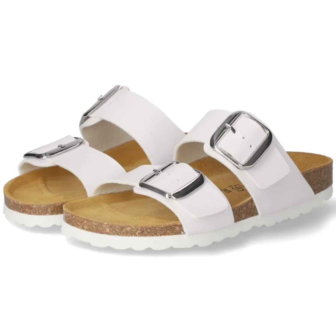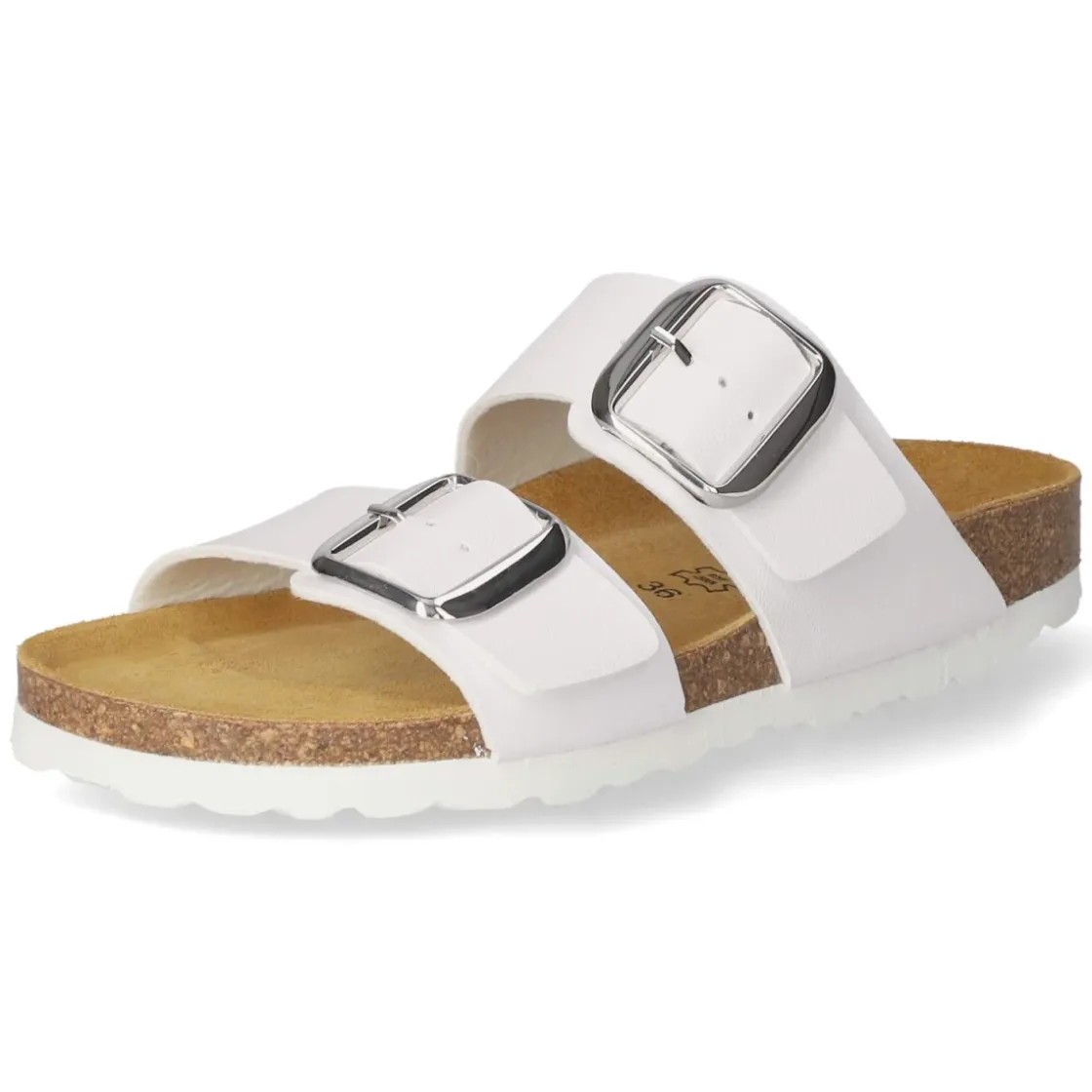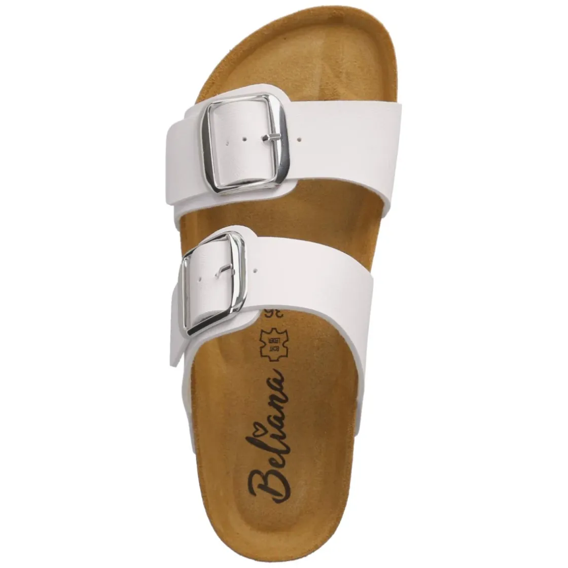 Die Pantoletten von Beliana vereinen moderne Optik und Komfort in einem zeitlosen Weiß. Zwei breite Riemen aus pflegeleichtem Kunstleder werden von großen, markanten Schnallen gehalten und setzen einen klaren Akzent. Die hautfreundliche Lederdecksohle liegt angenehm am Fuß, während das vorgeformte, gepolsterte Tieffußbett die natürliche Fußstellung unterstützt. Eine flexible Sohle sorgt für geschmeidiges Abrollen im Alltag, der offene Zehenbereich bringt sommerliche Leichtigkeit. Der Schnitt fällt normal aus und richtet sich an Damen, die unkomplizierte Begleiter für Freizeit und Reise schätzen. Das Material ist unempfindlich und lässt sich leicht reinigen, sodass der frische Look lange erhalten bleibt. Modetipp: In Kombination mit weit geschnittener Leinenhose und einem cleanen Tanktop entsteht ein lässig-eleganter Sommerlook; dazu eine filigrane Kette oder eine Korbtasche für ein harmonisches Finish.
