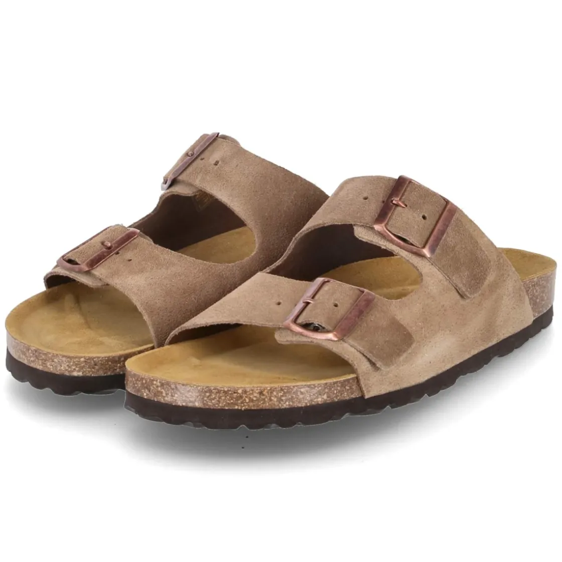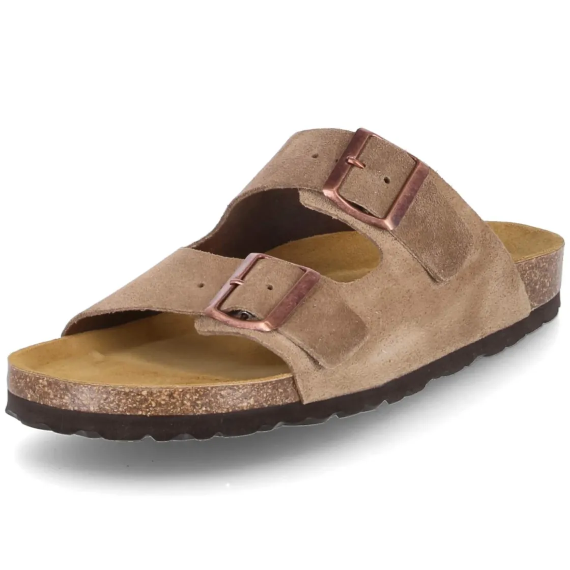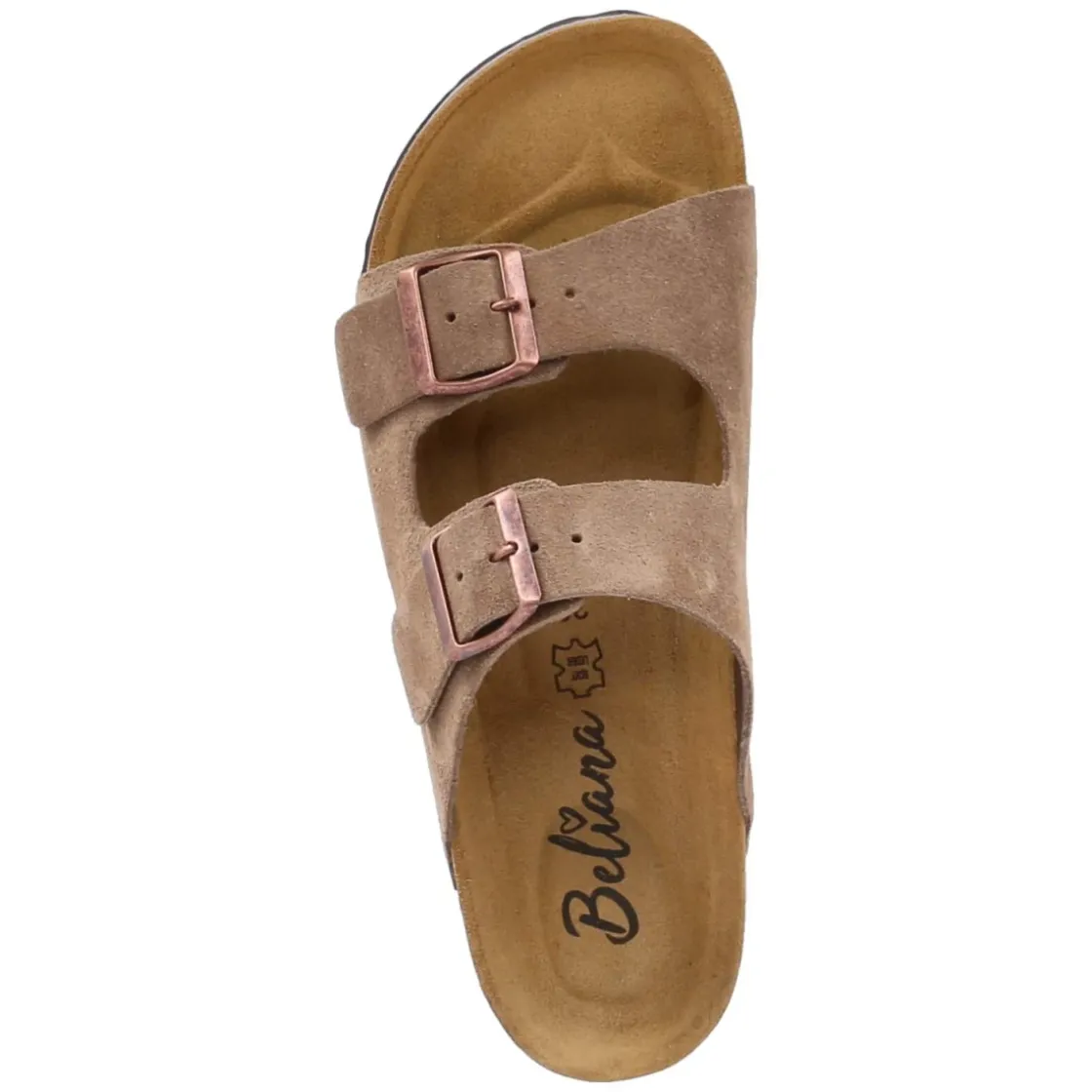 Beliana präsentiert eine Damen-Pantolette, die Komfort und zeitlose Optik vereint. Weiches, braunes Rauleder und langlebiges Echtleder prägen den natürlichen Look, während zwei Schnallen in warmer Kupferoptik die Passform individuell regulieren. Die offene Schuhspitze unterstreicht die luftige Anmutung, die lederne Decksohle und das gepolsterte, vorgeformte Lederfußbett sorgen für angenehmen Halt bei geringem Gewicht. Der Schnitt fällt größer aus; bei Unsicherheit kann die kleinere Größe die harmonischere Wahl sein. Ob zu City-Errand oder Wochenendtrip, die Form bleibt schlicht und vielseitig kombinierbar. Modetipp: Zu cropped Jeans und lockerer Hemdbluse entsteht ein entspannt-eleganter Sommerstil, der durch Accessoires in Kupfertönen den Metallakzenten des Schuhs schmeichelhaft begegnet.
