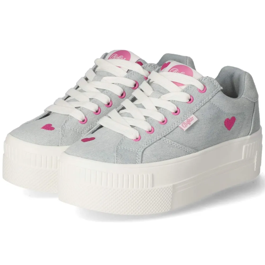Der Low Sneaker PAIRED HEART von Buffalo setzt ein verspieltes Statement in Blau und bringt Komfort auf ein neues Level. Das leichte Textilobermaterial umschmeichelt den Fuß, während die runde Spitze und der bequem gepolsterte Einstieg den ganzen Tag über angenehmes Tragegefühl sichern. Eine markante Plateausohle mit 5 cm Höhe streckt die Silhouette, die verstärkte Ferse sorgt für Stabilität. Pinkfarbene Akzente, Herzchen und präzise Ziernähte unterstreichen den charakteristischen Look, Markendetails runden das Design ab. Dank Schnürsenkeln lässt sich die Passform individuell regulieren; das gepolsterte Wechselfußbett bietet bei Bedarf schnellen Austausch. Der Schuh fällt normal aus und eignet sich ideal für Damen, die einen frischen City-Stil bevorzugen. Modetipp: Besonders stimmig zu hellen Mom-Jeans, Cropped-Strick und einem leichten Trench in Naturtönen.