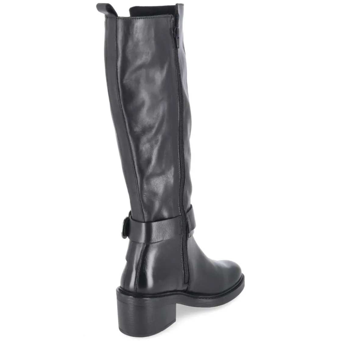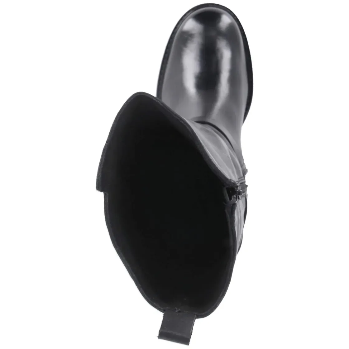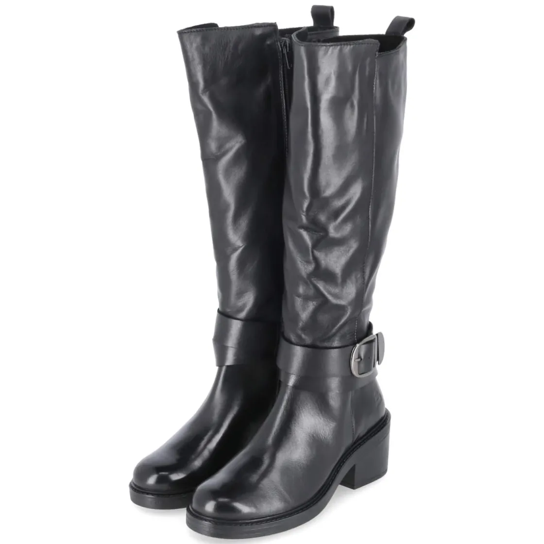 Schwarzer Damen-Stiefel von Bullboxer aus langlebigem Echtleder, der mit klarer Silhouette und zuverlässiger Verarbeitung überzeugt. Der 6 cm hohe Blockabsatz bietet angenehme Höhe bei stabiler Basis, die runde Schuhspitze rundet den zeitlosen Look ab. Dank bequemer Reißverschlußeinstieg, Anziehlasche und gepolstertem Fußbett gelingen lange Tage mühelos. Leichtes Fleecefutter wärmt an kühlen Tagen, der verstärkte Fersenbereich erhöht die Stabilität. Eine rutschhemmende Laufsohle ohne Profil sorgt dennoch für Halt, während ein Riemen mit Schnalle im Knöchelbereich stilvolle Akzente setzt. Schaft ca. 39 cm hoch, 36 cm Umfang. Größenhinweis: fällt kleiner aus; daher eine Nummer größer bestellen. Modetipp: Besonders wirkungsvoll zu Midikleid in Feinstrick und Oversize-Mantel, alternativ über schmale Jeans mit Trench.