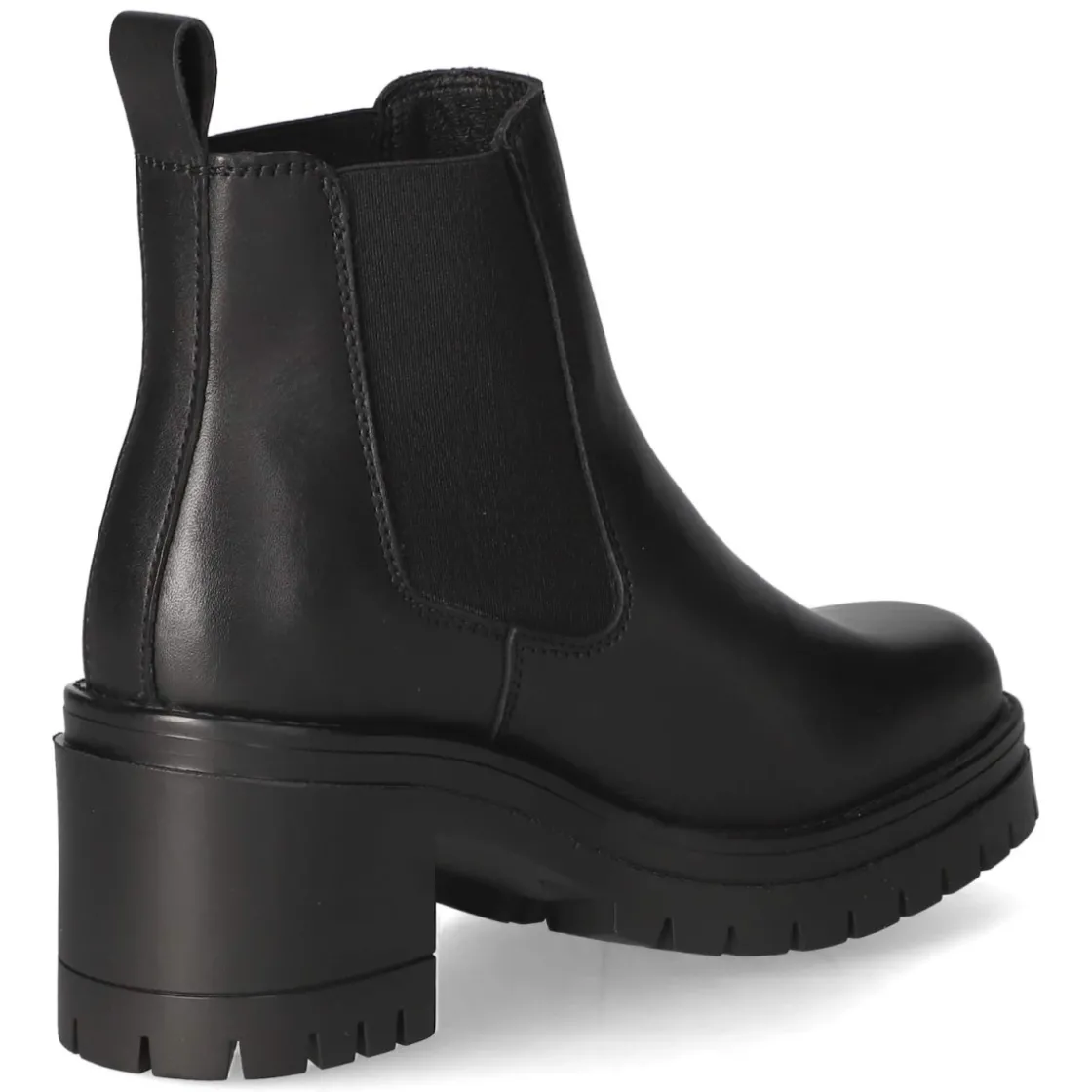 Der Ankle Boot von Fräulein Frida vereint zeitlose Eleganz mit hohem Tragekomfort. Das schwarze Glattleder zeichnet sich durch eine angenehme Atmungsaktivität aus und schmiegt sich dank weicher Verarbeitung an den Fuß. Charakteristische Chelsea-Elemente mit zwei Elastikeinsätzen und Anziehlasche ermöglichen ein müheloses Hineinschlüpfen, während der 5 cm hohe Blockabsatz sicheren Stand und eine feminine Linie betont. Die runde Spitze wahrt klassischen Chic, das gepolsterte Fußbett und die synthetische Decksohle sorgen für entspannte Schritte im Alltag. Eine rutschfeste Profilsohle gibt Halt auf vielfältigen Untergründen. Das Modell fällt größengetreu aus und passt zu Beruf und Freizeit gleichermaßen. Modetipp: Besonders stimmig zu Cropped-Jeans, Strickpullover und strukturiertem Blazermantel oder zu einem Midikleid mit blickdichten Strümpfen.
