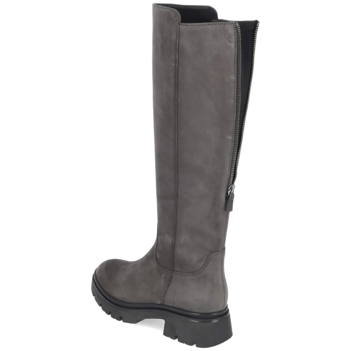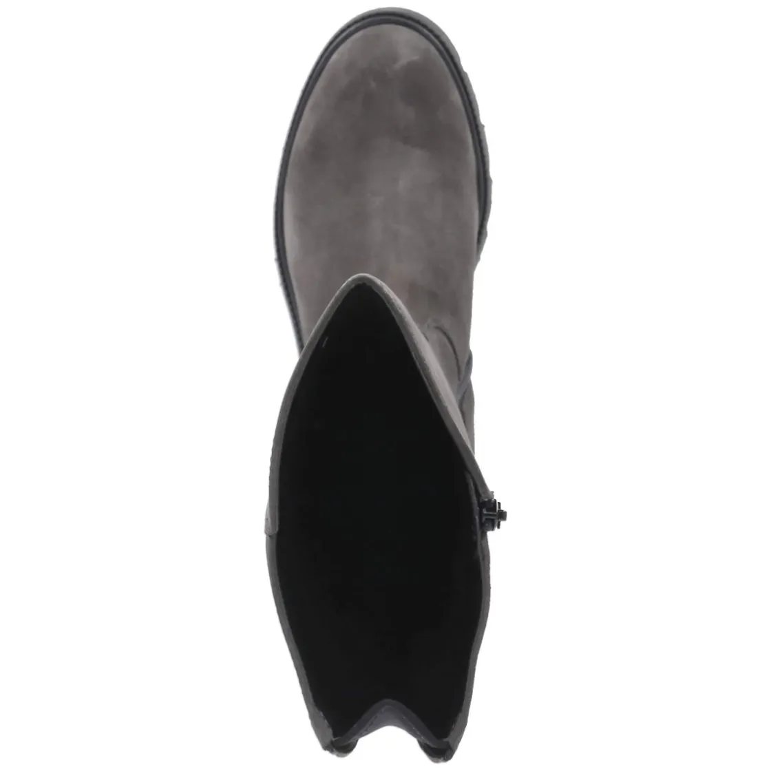 Der graue Damen-Stiefel von Gabor verbindet zeitlosen Look mit durchdachtem Komfort. Das Obermaterial aus Leder und Synthetik zeigt eine samtige Oberfläche, die dem cleanen Design zusätzliche Eleganz verleiht. Mit normaler Passform, runder Schuhspitze und 4,5 cm hohem Blockabsatz bietet das Modell einen stabilen Auftritt im Alltag. Die textile Decksohle und das komfortable Wechselfußbett sorgen für weiches Auftreten und erlauben den Einsatz eigener Einlagen. Ein seitlicher Reißverschluss erleichtert das Anziehen, während der hintere Schaft-Reißverschluss die Schaftweite flexibel erweitert. Der Varioschaft mit ca. 40 cm Höhe und 34 cm Umfang passt sich verschiedenen Wadenformen an. Eine rutschfeste Profilsohle erhöht die Trittsicherheit bei wechselhaftem Wetter. Modetipp: Zum grauen Stiefel harmonieren Feinstrickkleid und langer Wollmantel in gedeckten Tönen; Ton-in-Ton-Accessoires unterstreichen die elegante Linie.