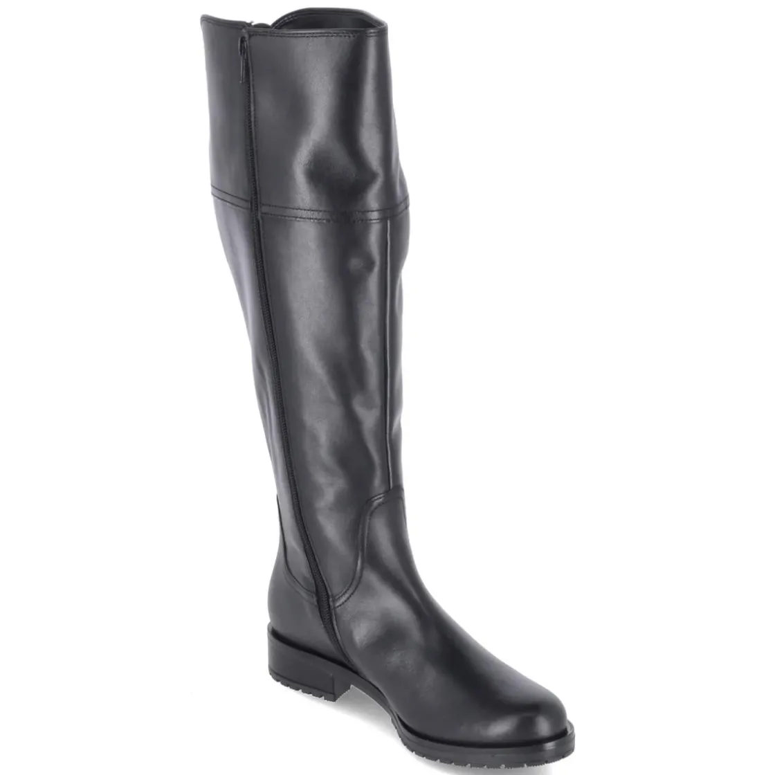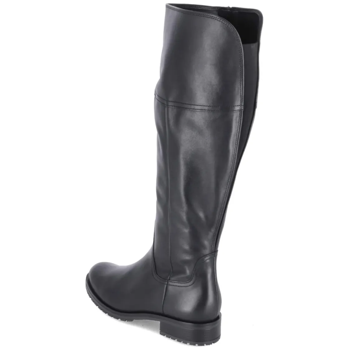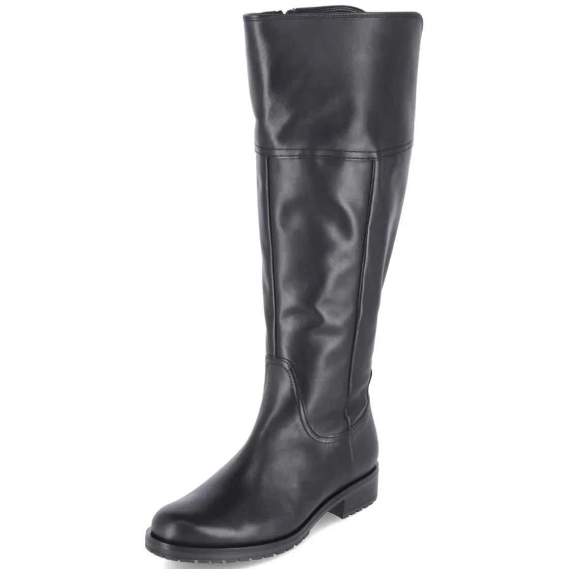 Der Damenstiefel von Gabor vereint zeitlose Eleganz mit komfortabler Ausstattung. Langlebiges Echtleder in schwarzem Glattleder sorgt für einen edlen Look und robuste Haltbarkeit, während die flexible, griffige Laufsohle sicheren Tritt bietet. Der Blockabsatz mit 3,5 cm Höhe und die runde Schuhspitze unterstützen ein entspanntes Abrollen. Der Schaft in XL mit ca. 40 cm Höhe und 40 cm Umfang passt sich dank großem Elastikkeil am hinteren Schaft angenehm an. Ein seitlicher Reißverschluss erleichtert das Anziehen. Innen punkten gepolstertes Fußbett, Textil-Decksohle, verstärkter Fersenbereich und das praktische Wechselfußbett für individuelle Einlagen. Die Passform fällt normal aus und begleitet zuverlässig durch Alltag und Office. Modetipp: Zu Midikleid und Wollmantel mit blickdichter Strumpfhose kombinieren; Ton-in-Ton-Schwarz und goldfarbene Accessoires unterstreichen den klassischen Charakter.