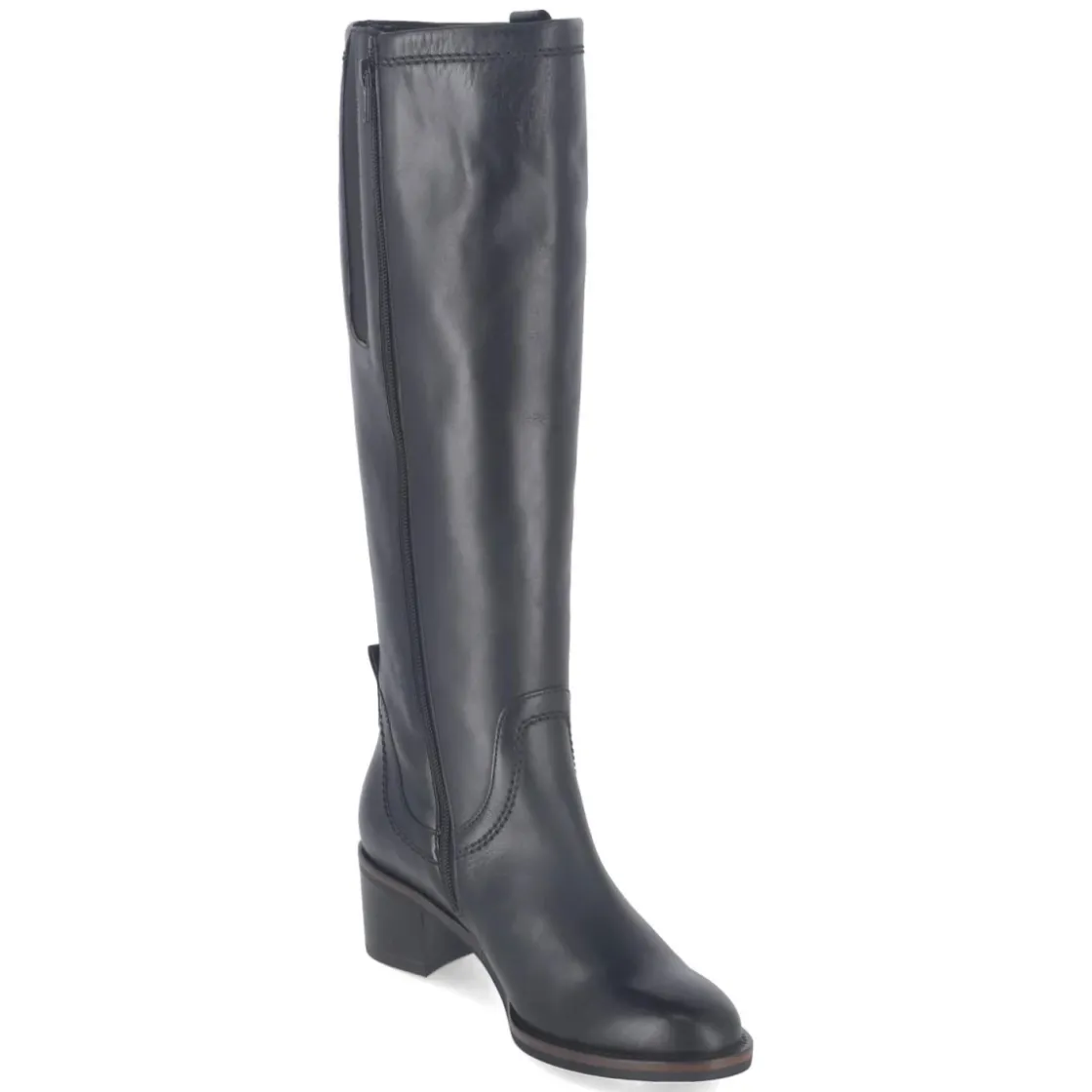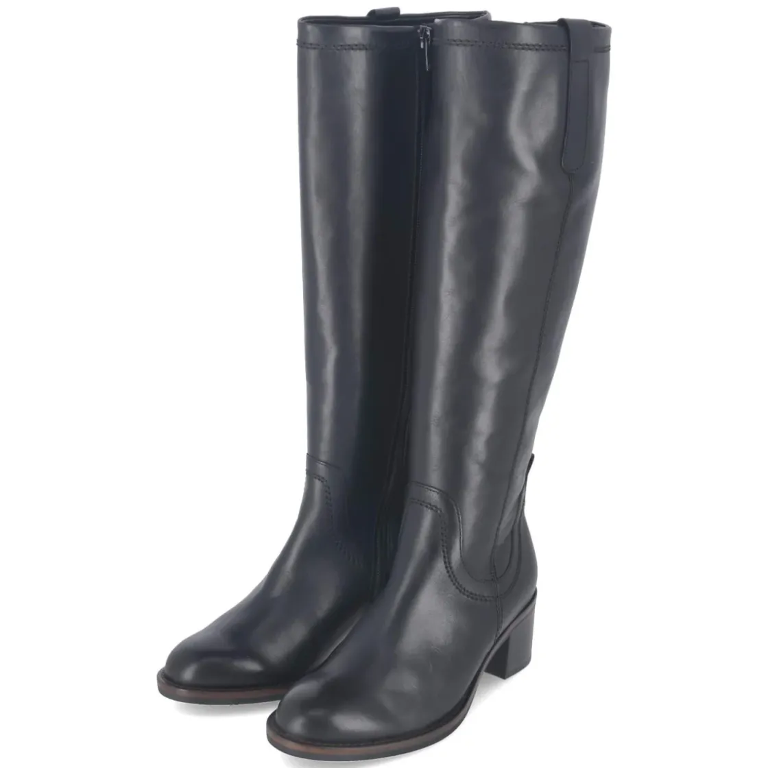 Dieser kniehohe Gabor Stiefel vereint zeitloses Design mit hohem Tragekomfort. Weiches Glattleder formt eine elegante Silhouette mit rund zulaufender Spitze, während der 5 cm hohe Blockabsatz für souveränen Stand sorgt. Der seitliche Reißverschluss und die Anziehlasche erleichtern den Einstieg, der verstärkte Fersenbereich stabilisiert jeden Schritt. Ein gepolstertes Fußbett mit textiler Decksohle ergänzt die flexible, rutschfeste Laufsohle für zuverlässigen Grip auf wechselnden Untergründen. Der Schaft misst ca. 40 cm in der Höhe und ca. 35 cm im Umfang, die Passform fällt normal aus. Als vielseitiger Begleiter fügt sich der Stiefel mühelos in Business- wie Freizeitlooks ein. Modetipp: Zu Midikleid und Wollmantel entsteht ein harmonischer, gestreckter Look, der den Blockabsatz elegant zur Geltung bringt und die klare Linienführung des Stiefels betont.