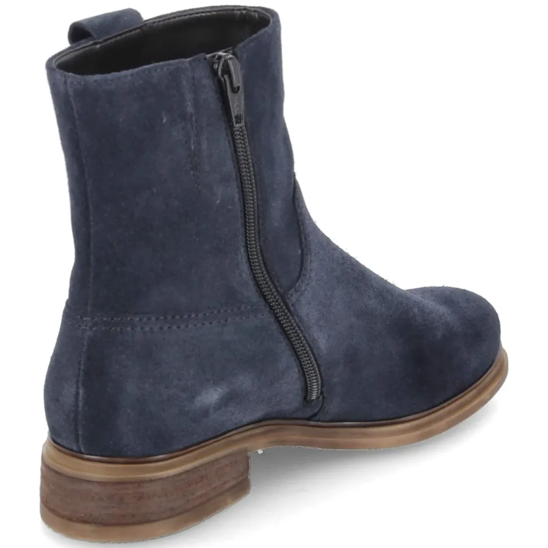 Zeitloser City-Style trifft Komfort: Die blauen Gabor Stiefeletten aus weichem Rauleder zeigen eine harmonische Silhouette mit runder Spitze und standfestem 3-cm-Blockabsatz. Das langlebige Echtleder schmiegt sich angenehm an, während ein leichtes Futter an kühlen Tagen Wärme spendet. Ein bequemer Reißverschlußeinstieg, seitliche Anziehlasche und ein kleiner Elastikeinsatz am Schaft erleichtern das An- und Ausziehen. Die flexible, rutschfeste Laufsohle sorgt für zuverlässigen Halt, die verstärkte Ferse für Stabilität. Dank Wechselfußbett sind persönliche Einlagen schnell integriert. Der Schnitt fällt normal aus und bietet alltagstaugliche Bequemlichkeit mit eleganter Note. Modetipp: Zu Midikleid und Strickcardigan entsteht ein moderner Kontrast, Ton-in-Ton mit blauer Crossbody-Bag wirkt der Look besonders stimmig.