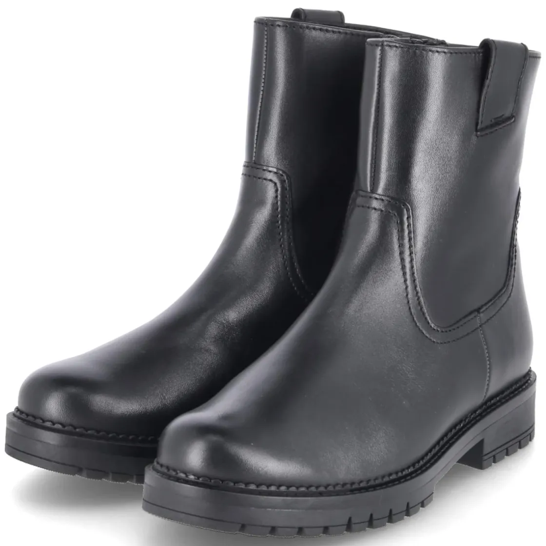 Diese Gabor Stiefeletten verbinden zeitlosen Chic mit spürbarem Komfort. Das glatte, langlebige Echtleder in klassischem Schwarz erhält durch die runde Schuhspitze und den 3 cm hohen Blockabsatz eine feminine, zugleich standfeste Silhouette. Ein seitlicher Reißverschluss mit kleinem Elastikeinsatz erleichtert den Einstieg, die Anziehlasche sorgt für zügiges Hineinschlüpfen. Im Inneren verwöhnt eine weiche Textildecksohle, das komfortable Wechselfußbett ermöglicht individuelle Einlagen. Die rutschhemmende Profilsohle bietet Halt auf nassem Pflaster wie auf Büroböden. Dank normaler Passform fällt das Modell größengetreu aus und lässt sich vielfältig kombinieren – vom Wollkleid bis zur Denim. Modetipp: Ton-in-Ton-Looks mit schwarzer Slim-Pants und einem strukturierten Oversize-Blazer setzen das edle Glattleder souverän in Szene.