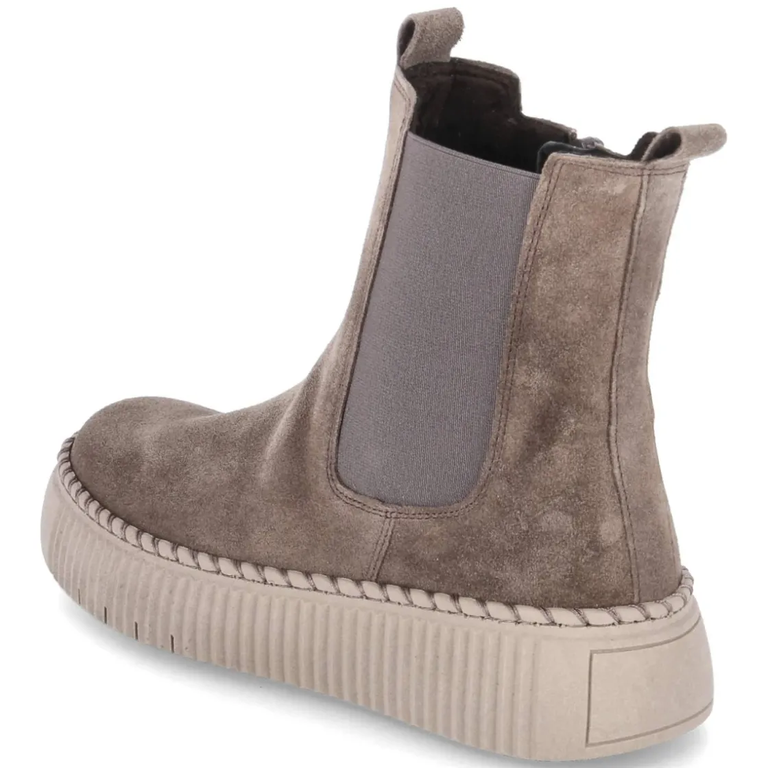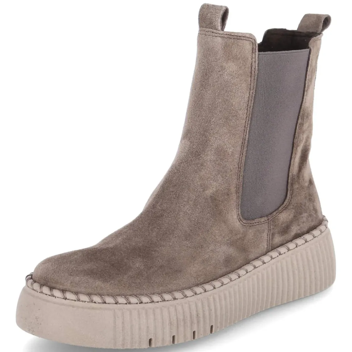 Zeitloser Komfort trifft auf urbanen Style: Diese Gabor Stiefeletten aus langlebigem Echtleder in weichem Rauleder-Finish überzeugen mit runder Spitze und ausgewogenem 4-cm-Plateau, das dezent Höhe schenkt und den Gang entspannt. Ein seitlicher Elastikeinsatz ergänzt den praktischen Reißverschluss für flexible Passform, während Anziehlasche und verstärkte Ferse das Einsteigen erleichtern und stabilisieren. Das gepolsterte Wechselfußbett mit textiler Decksohle sorgt für spürbaren Wohlfühlfaktor, lässt sich bei Bedarf austauschen und schafft Raum für individuelle Einlagen. Die dicke, markant vernähte Laufsohle bietet rutschhemmenden Grip auf glatten Böden. In Taupe vielseitig kombinierbar, fällt das Modell größengetreu aus und begleitet stilvoll durch Alltag und City. Modetipp: Zu Cropped-Jeans und Feinstrickpullover sowie einem hellen Wollmantel entsteht ein moderner, harmonischer Ton-in-Ton-Look.